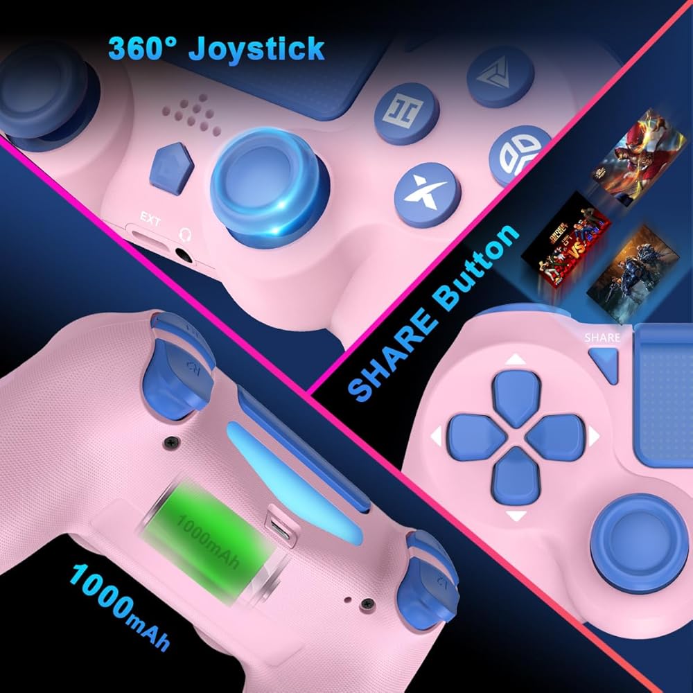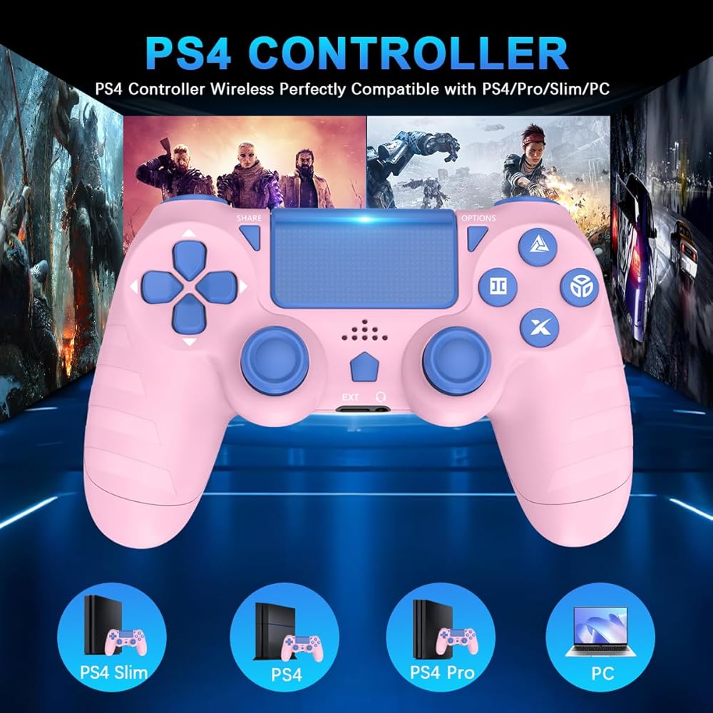 PS4/Pro/Slim PC용 DYONDER 무선 PS4 컨트롤러 - 1000mAh 배터리 6축 모션 센서 오디오 잭(PINK)