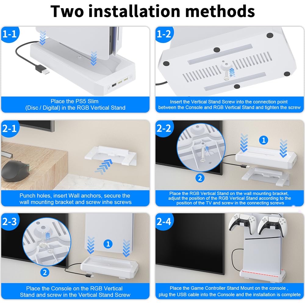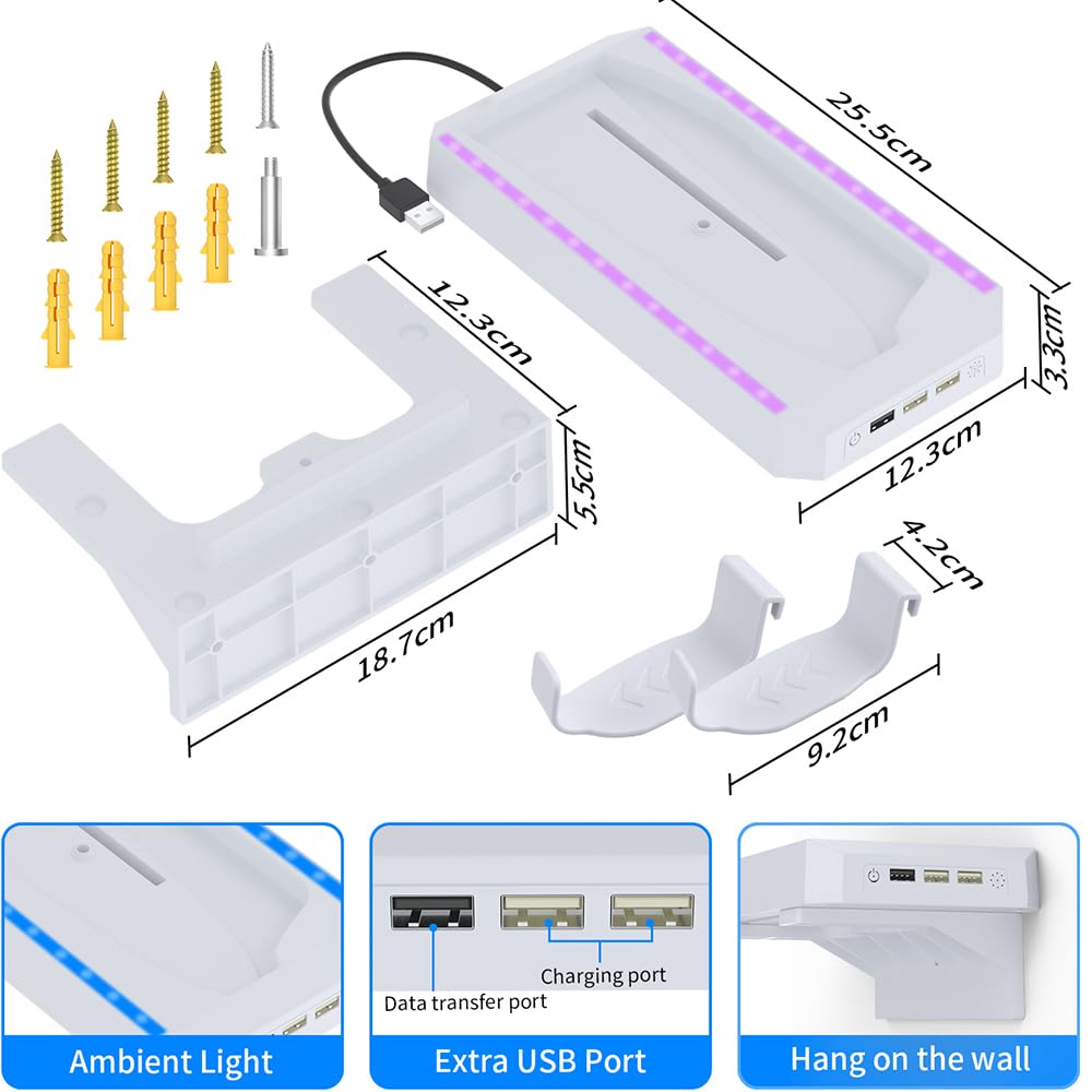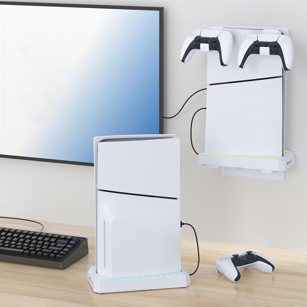 PS5 슬림용 조이좀 스탠드 RGB 조명 LED가 장착된 월 마운트 키트 및 PS5 슬림 디지털 및 디스크 에디션