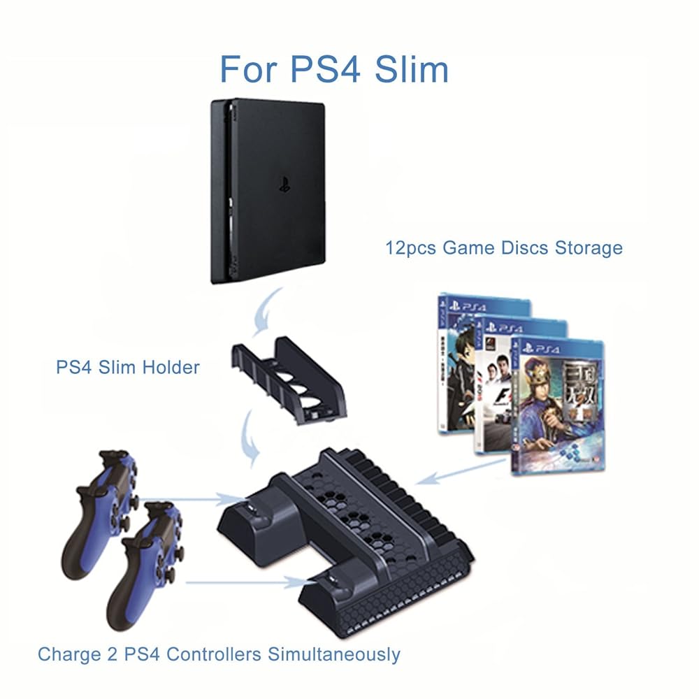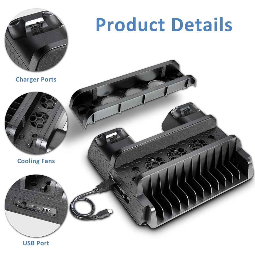 PS4 버티컬 스탠드 메가드림 12개 디스크 저장 게임 타워 듀얼 컨트롤러 충전 도크 스테이션 소니 플레이