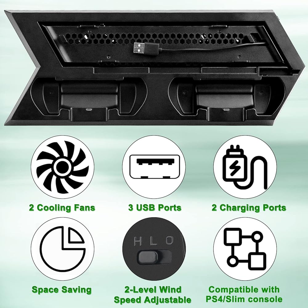 소니 PS4 / 슬림 콘솔용 OSTENT 듀얼 모터 냉각 팬 라디에이터 충전기 스테이션 USB 허브 세로 스탠드