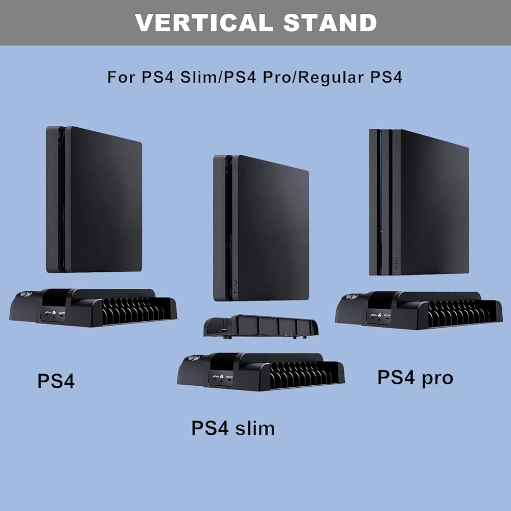 VGBUS PS4 냉각 팬 스테이션 - 듀얼 컨트롤러 USB 포트 및 12개의 게임 슬롯이 있는 수직 충전 도크