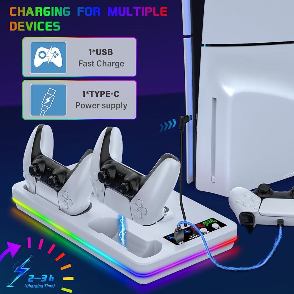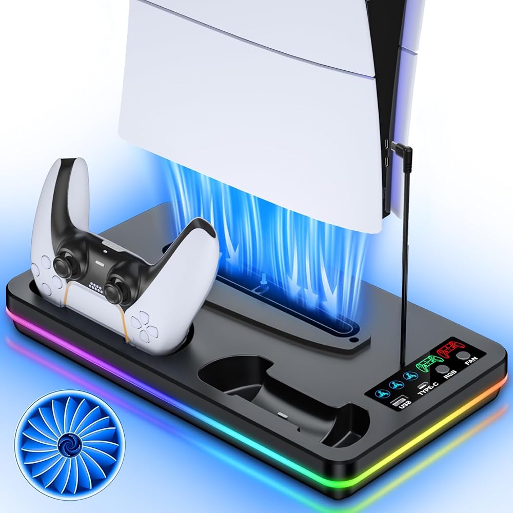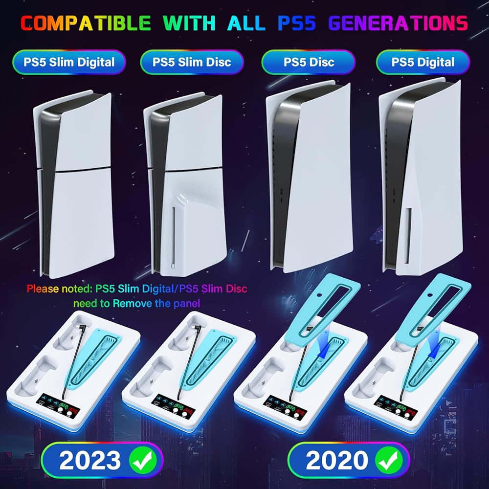 PS5/PS5 슬림/PS5 프로 스탠드 및 냉각 스테이션 PlayStation 5 슬림 및 스탠다드 디스크/디지털 콘솔용