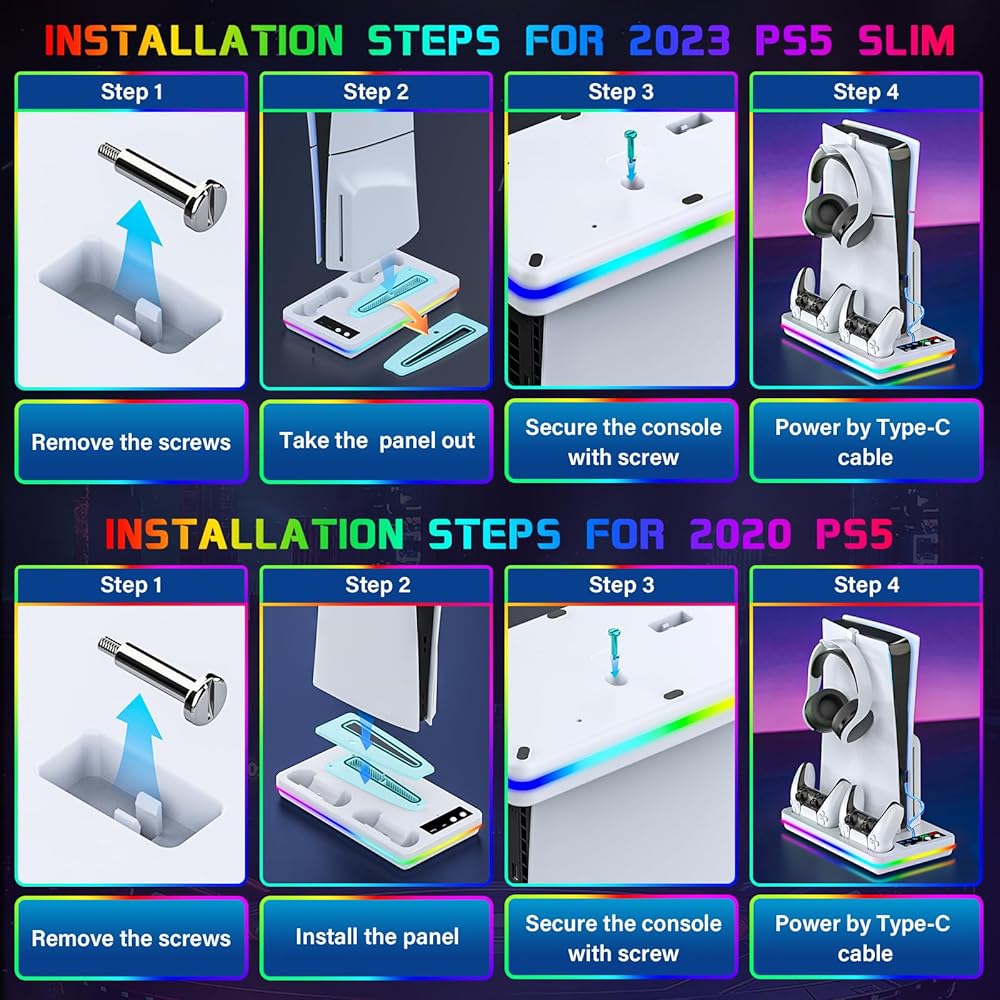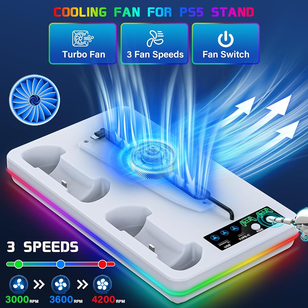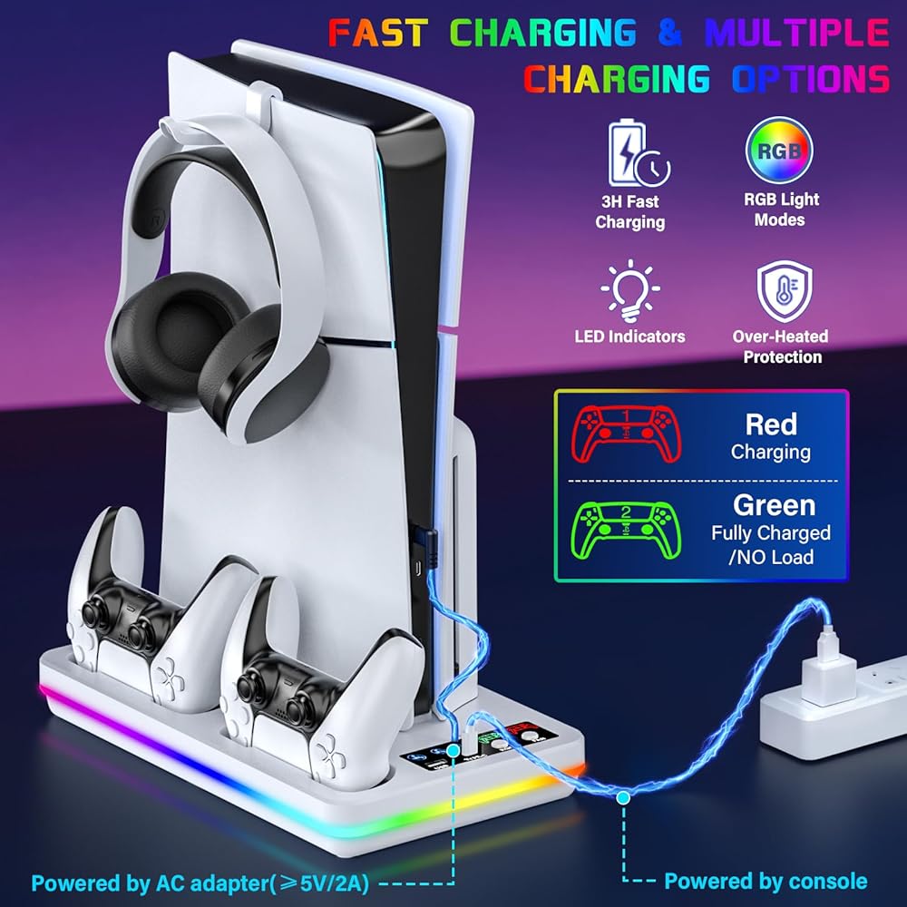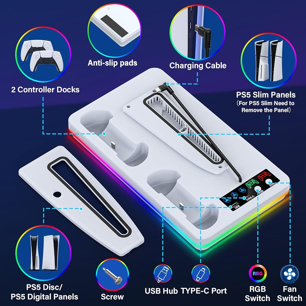 PS5/PS5 슬림/PS5 프로 스탠드 및 냉각 스테이션 PlayStation 5 슬림 및 스탠다드 디스크/디지털 콘솔용