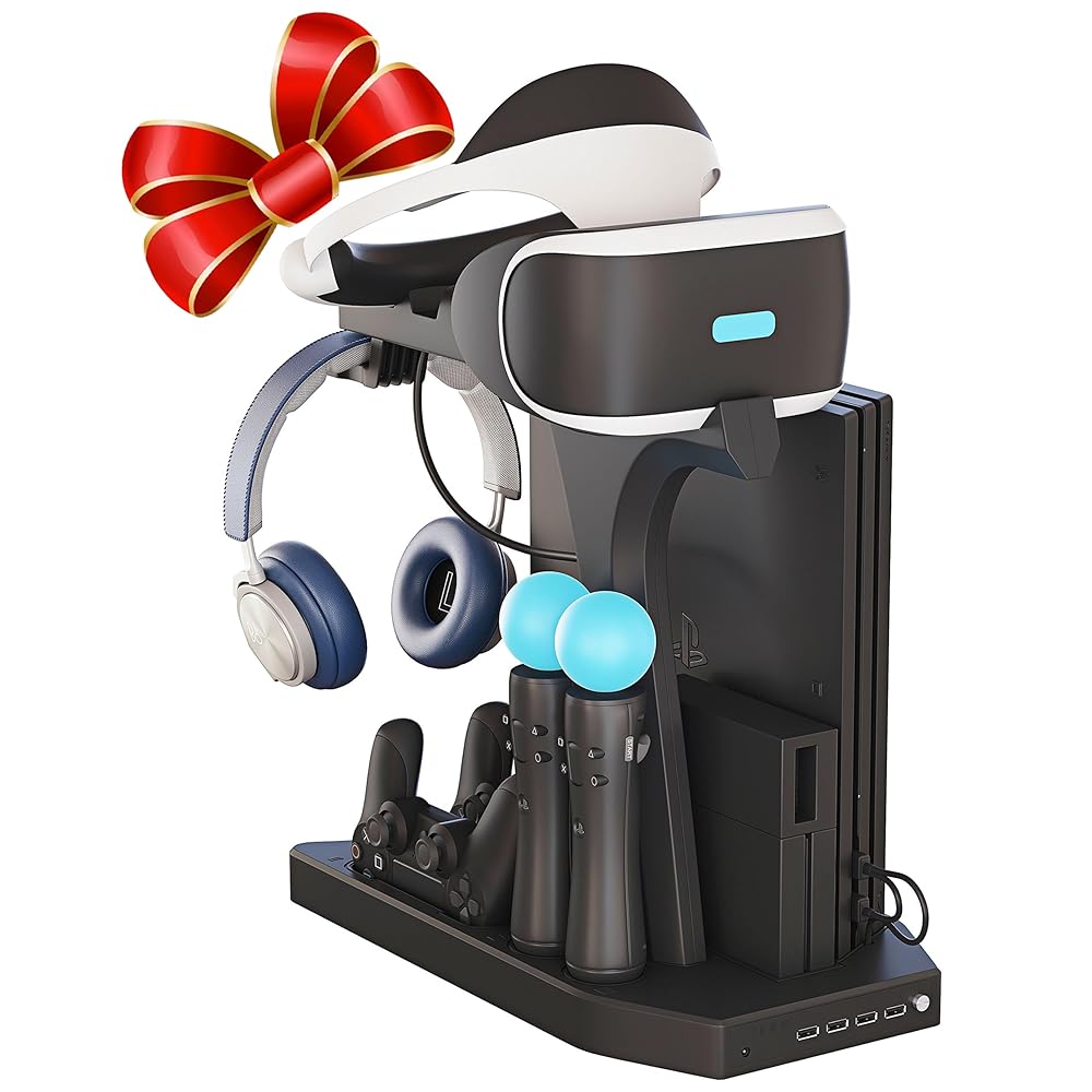 PS4 VR과 호환되는 Skywin PSVR 스탠드 - PS4 냉각 스테이션 및 PlayStation VR 스탠드용 충전 도크 PS VR
