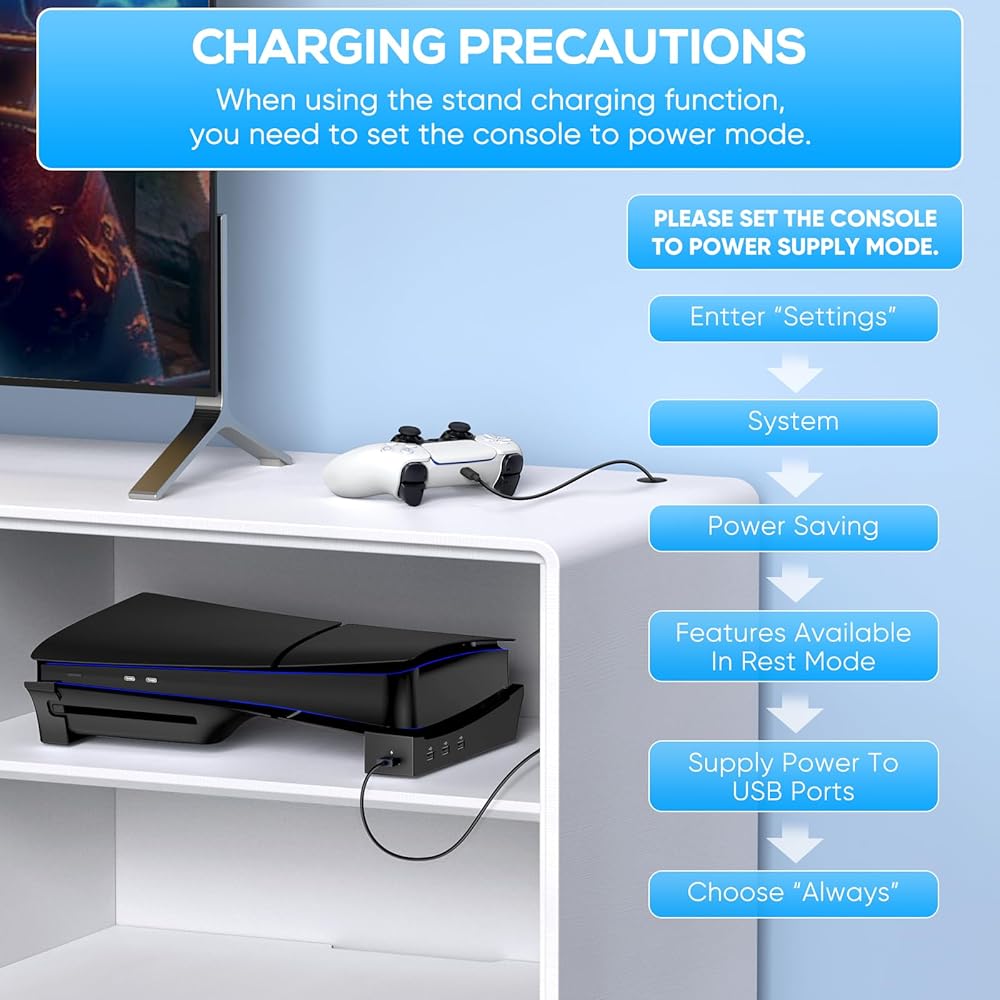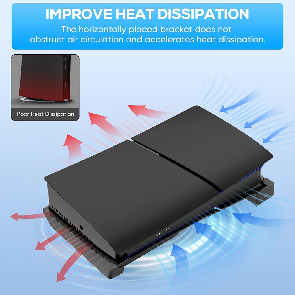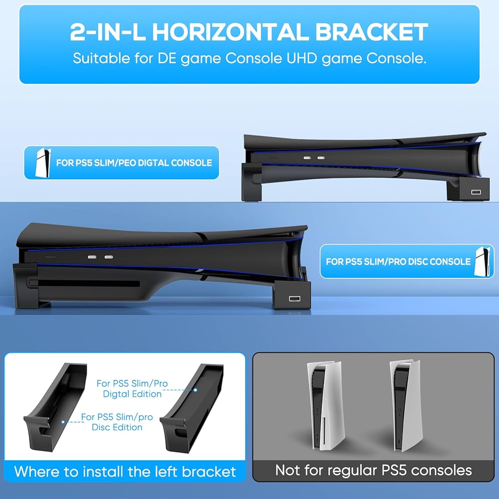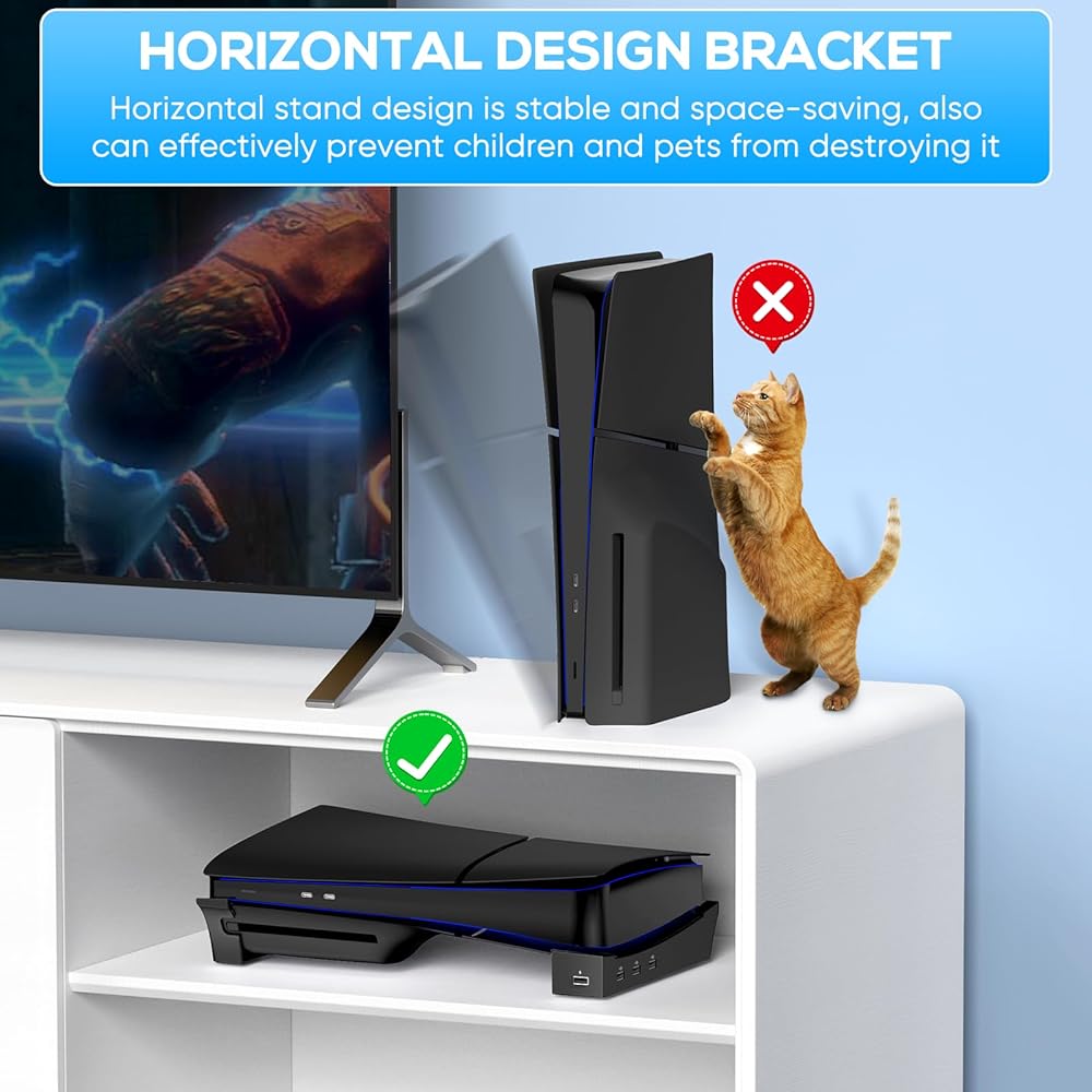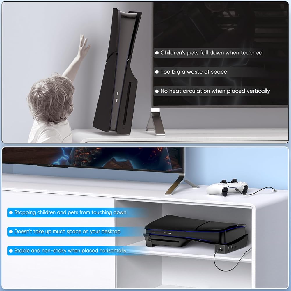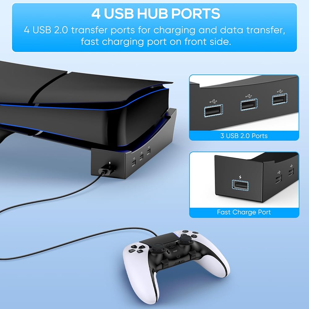 디스크 및 디지털 콘솔용 MENEEA PS5 Pro/Slim 수평 스탠드 4개의 USB 포트 PlayStation 5 슬림/프로용