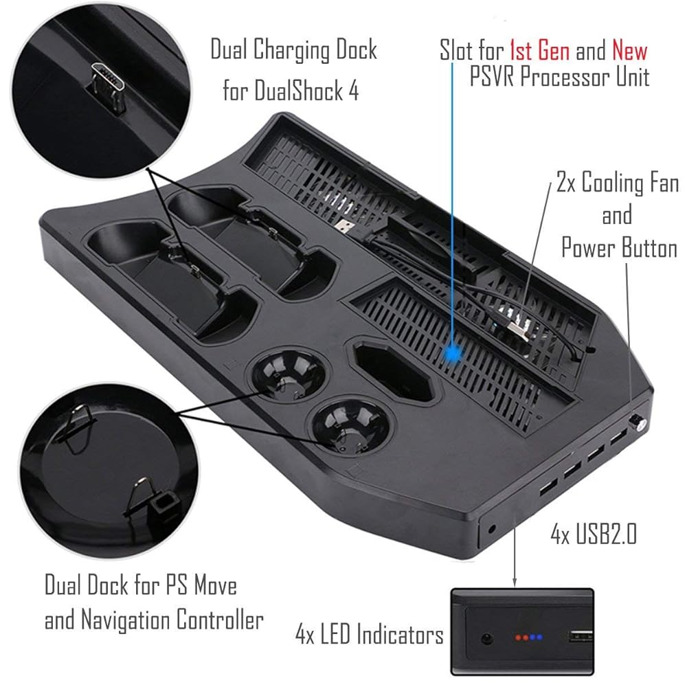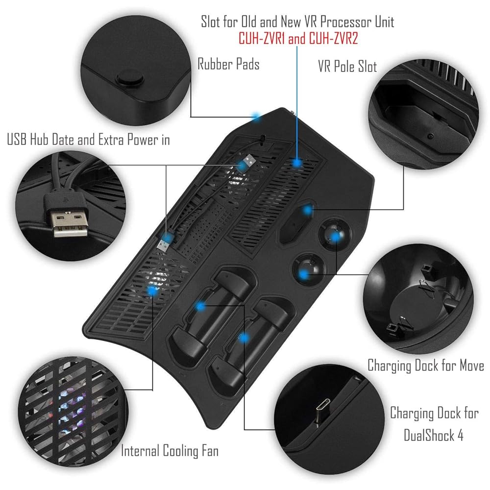 PSVR 스탠드 PS4 VR과 호환 - PS4/Slim/Pro 냉각 스테이션 및 플레이스테이션 VR 스탠드용 충전 도크와