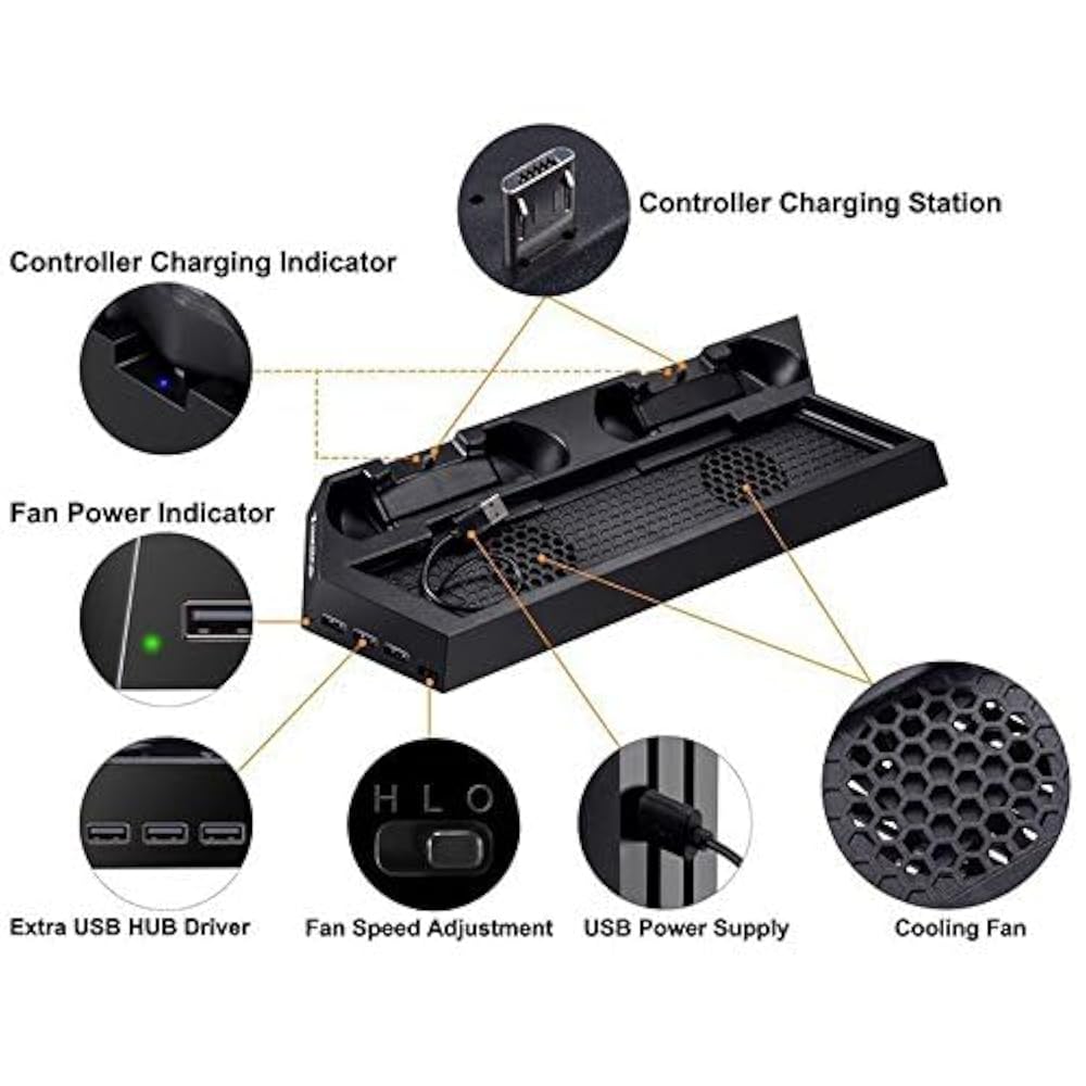 소니 PS4/슬림/프로 콘솔용 OSTENT 듀얼 컨트롤러 충전기 냉각 팬 USB 허브 세로 스탠드