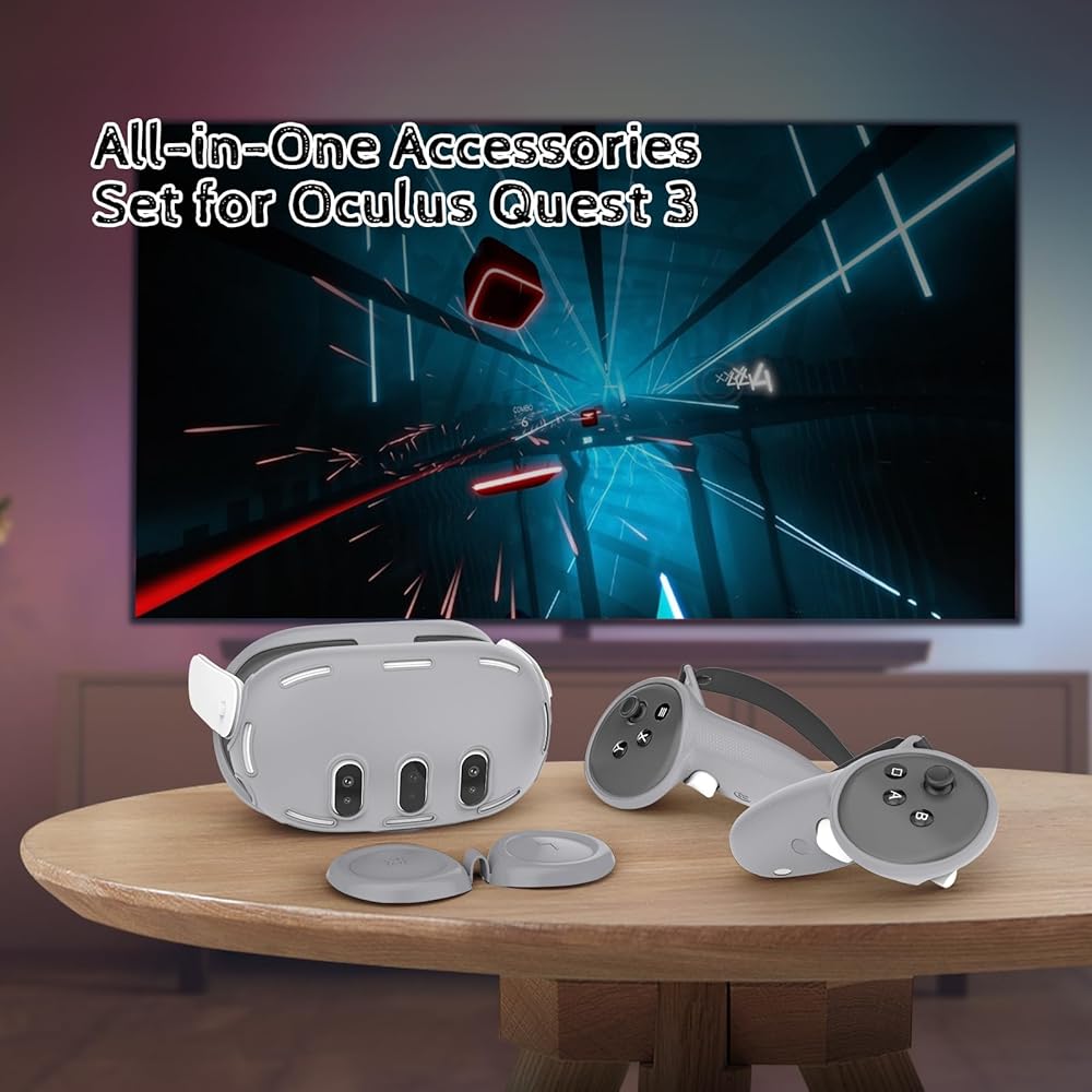 레로하스 디럭스 5 in 1 메타 퀘스트 3용 실리콘 액세서리 오큘러스 퀘스트 3용 VR 보호 케이스 세트 컨트