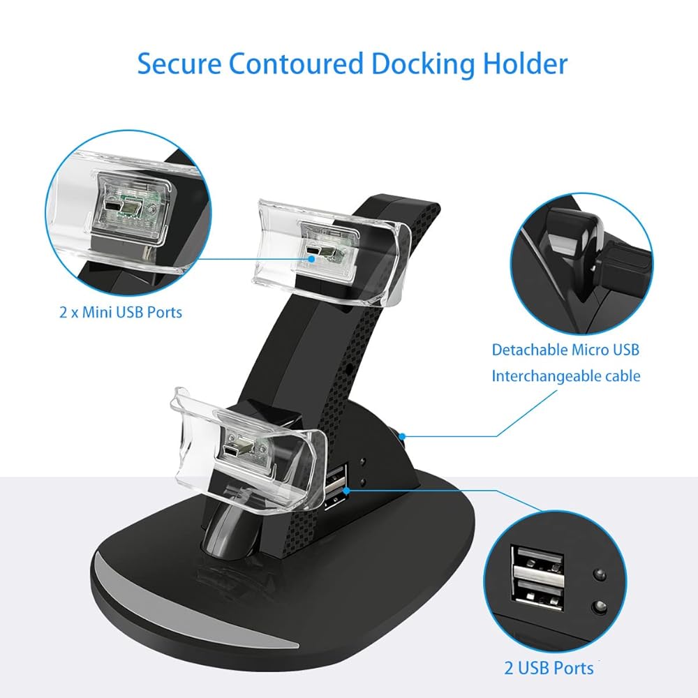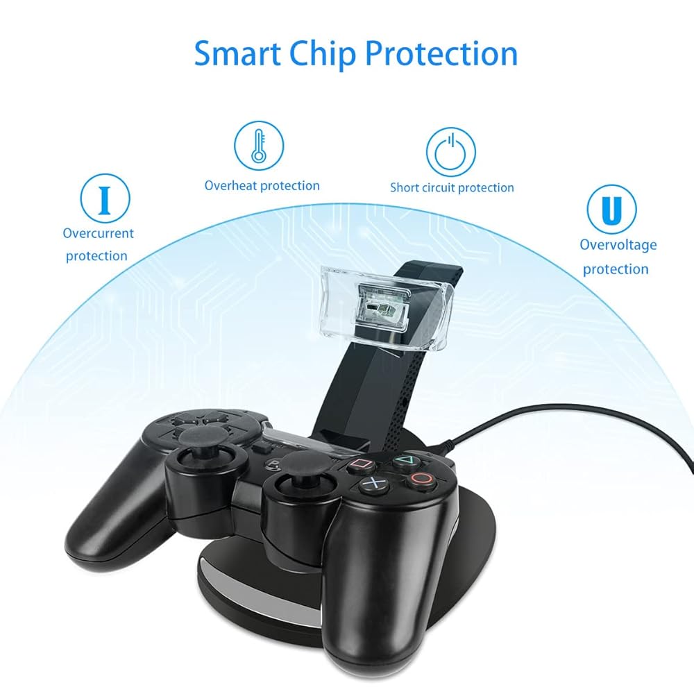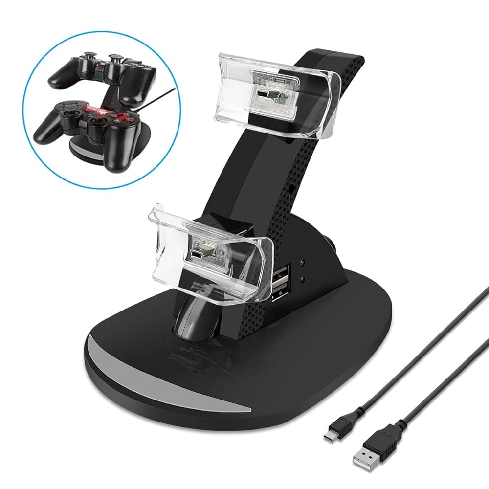 VSEER PS3 컨트롤러 충전기 듀얼 콘솔 충전기 충전 도킹 스테이션 스탠드(LED 표시등 포함) 검은색