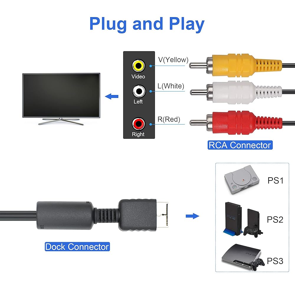 PS3 PS2 PS1용 AV 케이블 PlayStation 1 2 3 180만/6FT 복합 3 RCA 골드 도금 TV HDTV 디스플레이와 호환