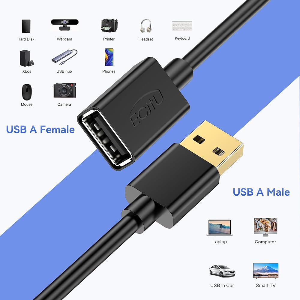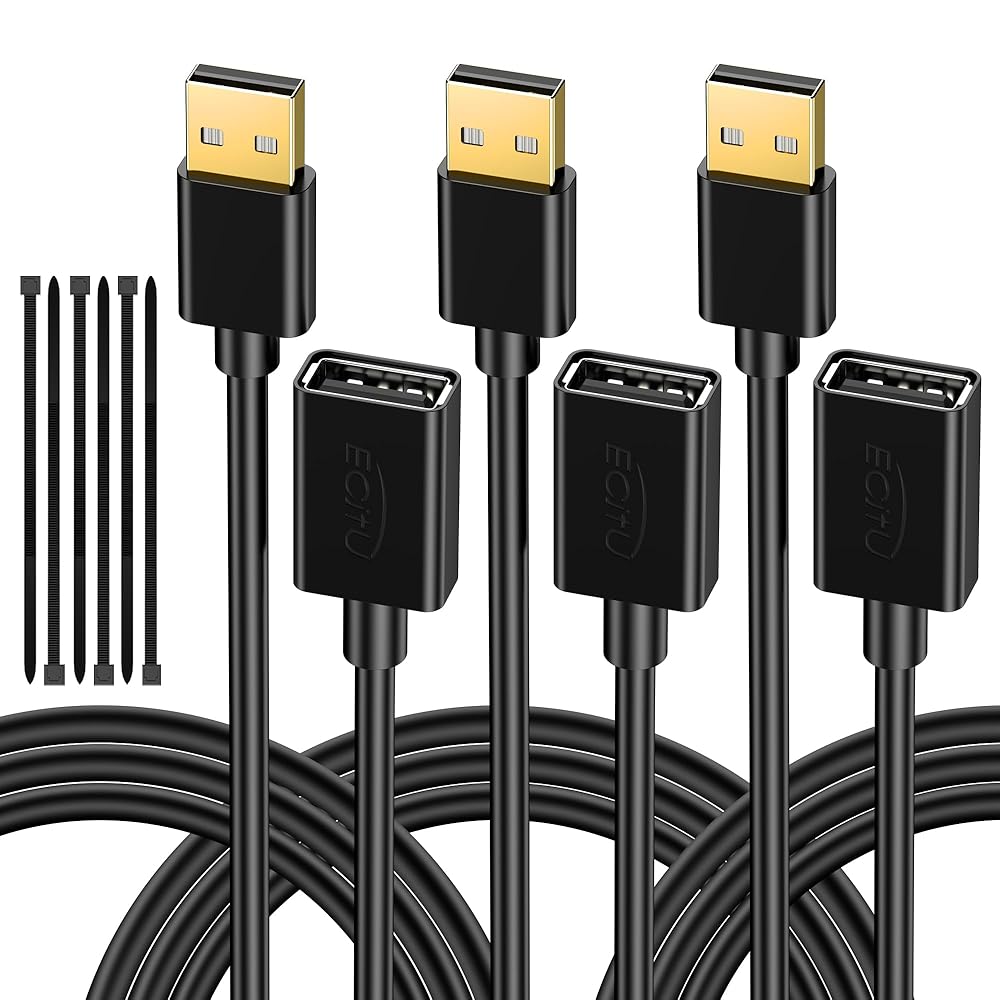 USB 익스텐더 코드 5FT(3팩) USB 2.0 확장 케이블 USB A 남성에서 여성으로 USB 플래시 드라이브 하드 드라