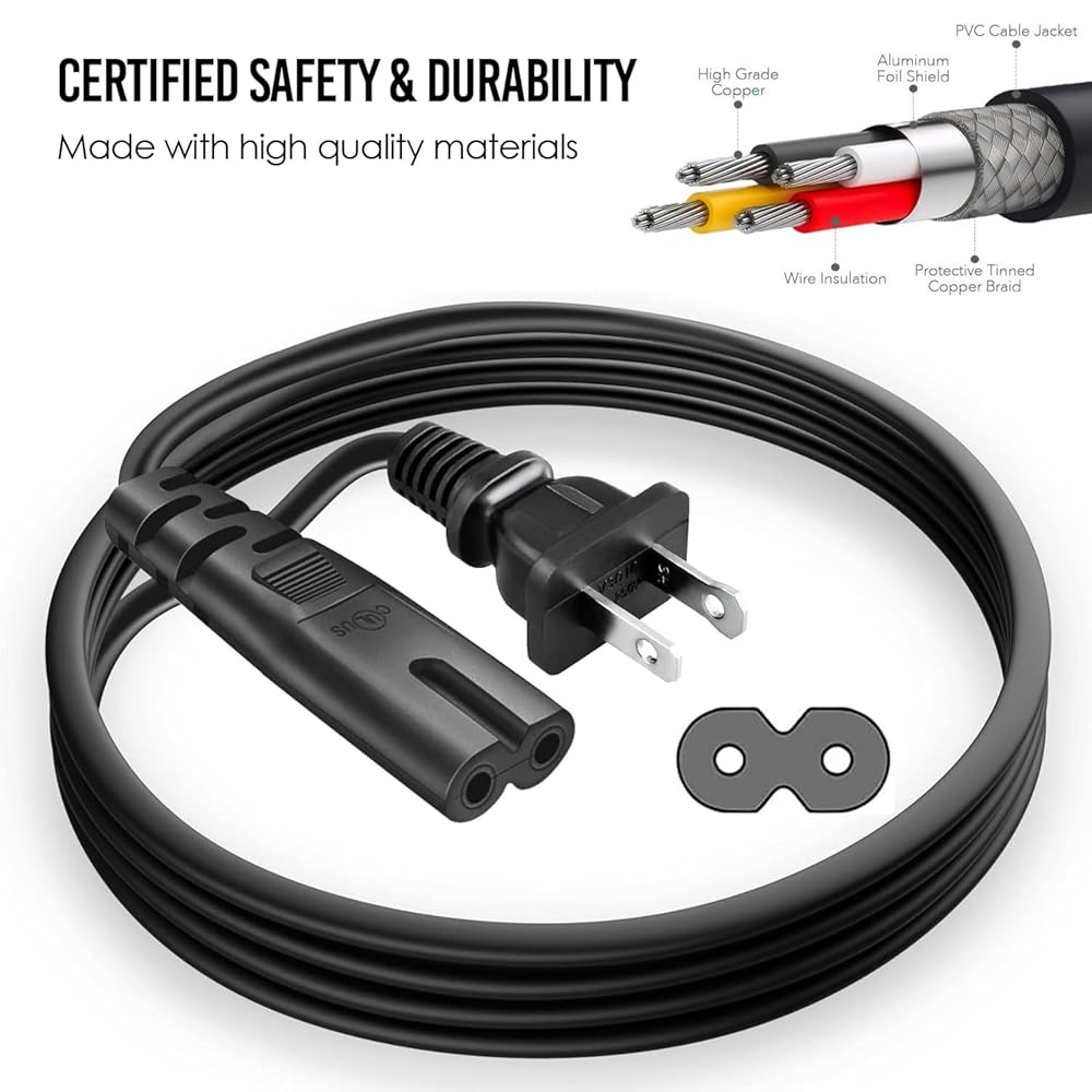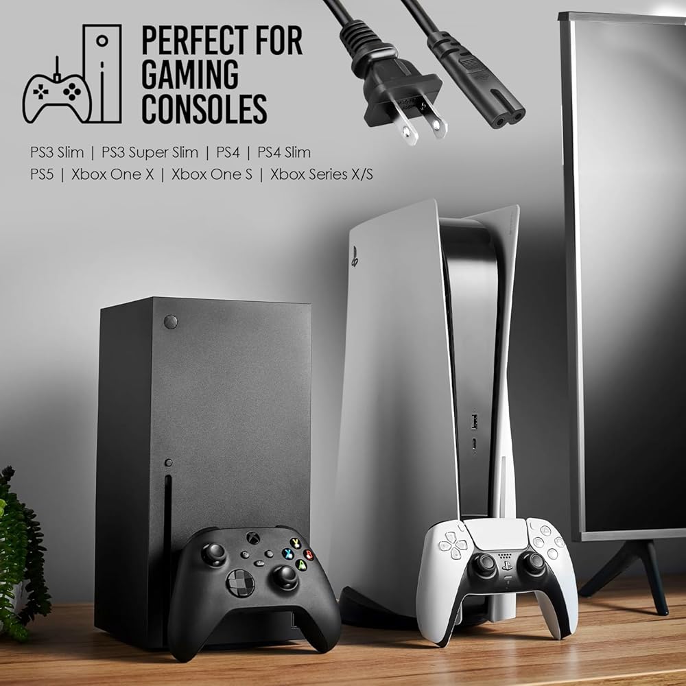 PS5 PS4 PS3 슬림 Xbox One S X - PlayStation 5 PlayStation 4 - C7 비편광용 AC 전원 케이블 교체. (3피
