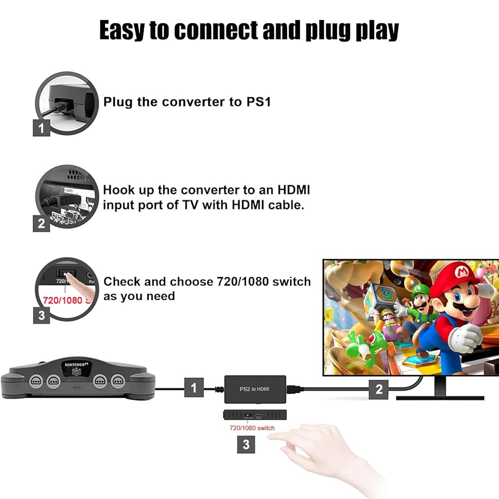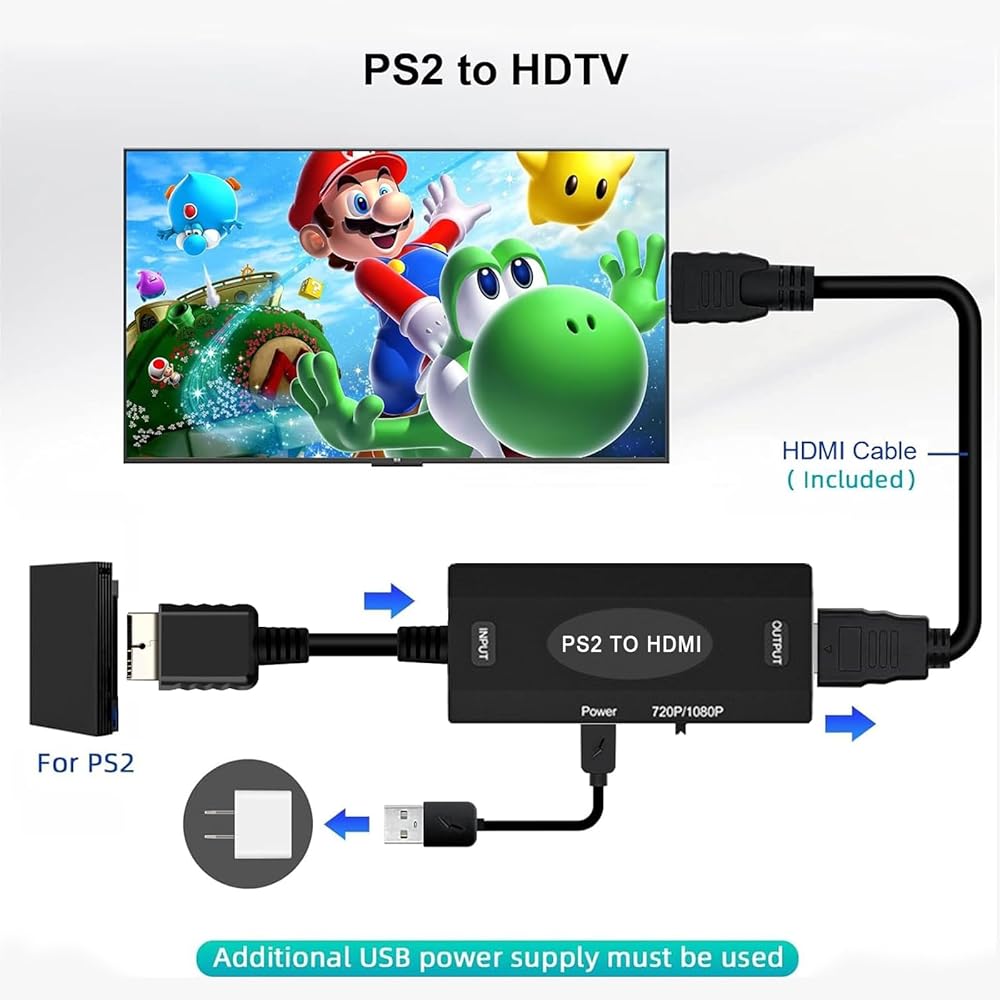 Musou PS2에서 HDMI 어댑터 PS2 HDMI 케이블 컨버터 지원 4:3/16:9 화면이 PlayStation 1/PlayStation 2 HD