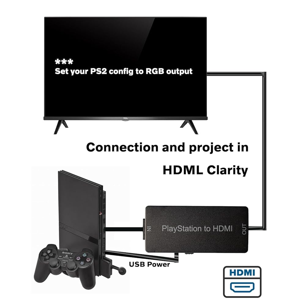 PS2-HDMI 어댑터 PS2-HDMI 케이블 PS2-HDMI 컨버터 지원 4:3/16:9 화면 종횡비 스위치. PlayStation 1/Play