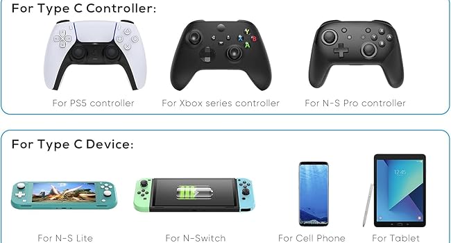 | Compatible Devices | for Playstation 5, Playstation 5 pro Switch Console, for Xbox Series S controller, for Xbox Series X controller, for Switch Pro controller iPhone 15/15 Pro/15 Pro Max/15 Plus, Samsung Galaxy S24/ S24+/ S24 Ultra, S23/ S23+/ S23 Ultra, S22/ S22+/ S22 Ultra, S21/ S21+/ S21 Ultra, S20 S10 S9 S8, Samsung A25 A15 A54 A10e A11 A12 A13 A14 A20 A23 A24 A03s A30 A31 A32 A33 A34 A40 A40s A41 A42 A50 A50s A51 A52 A53, Samsung Note 20/10, Z Flip/Fold 5 4 3, Amazon Fire HD 8/8Plus 10th/12th generation(2020/2022), Fire HD 10/10Plus 9th/11th/13th generation (2019-2023), LG K51/V60/V50/V40/G8/G7/G6/G5 ThinQ Stylo 4 5 6, Moto G9 G8 G7/G Stylus/G Power/G Fast/G Play/Edge, Pixel 8 8pro 7 7a 7pro 6 5 |