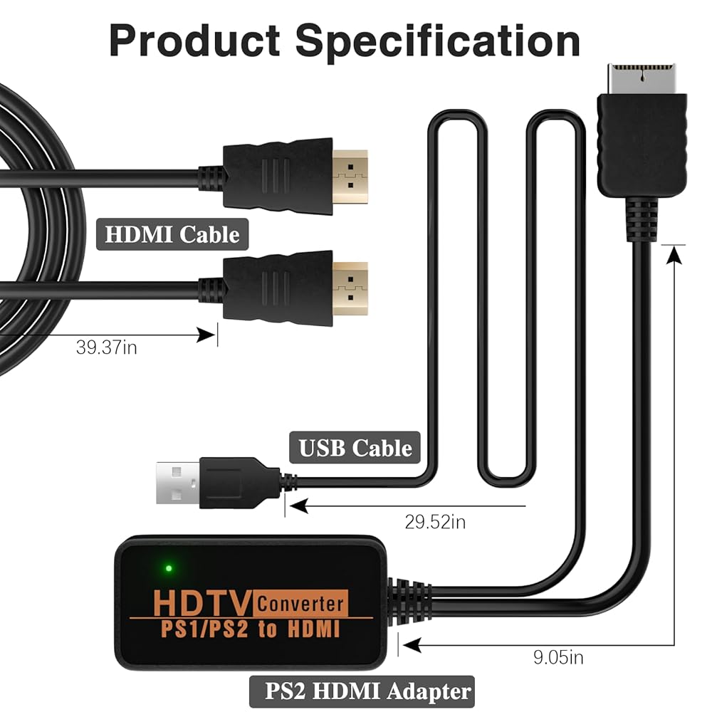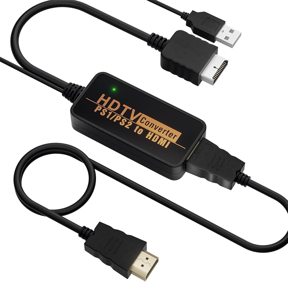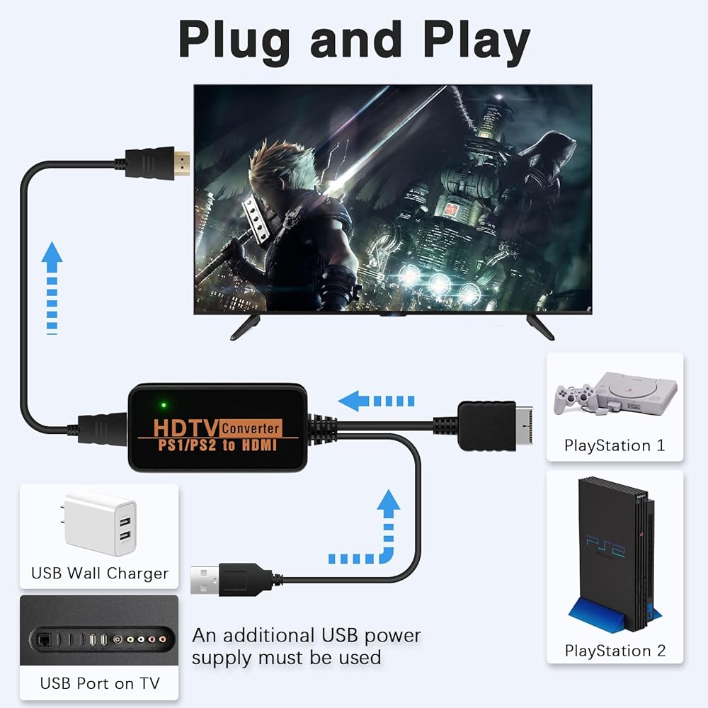 히슈웬 PS2 HDMI 어댑터 - 소니 플레이스테이션 1 및 2용 HDMI 케이블(USB 전원 및 4:3/16:9 출력)