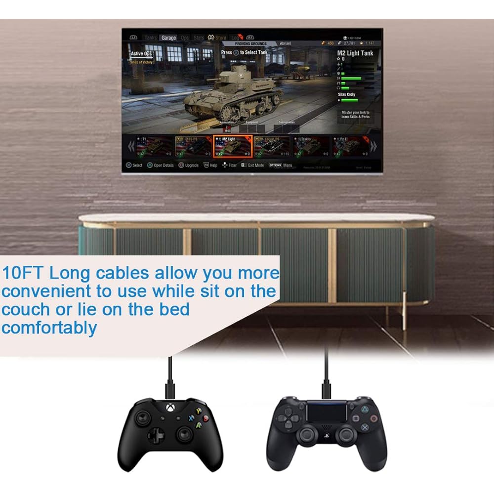 Xbox One 컨트롤러용 3팩 10FT PS4 충전기 코드 PS4 충전 케이블 Xbox One S/X 슬림 엘리트 컨트롤러용