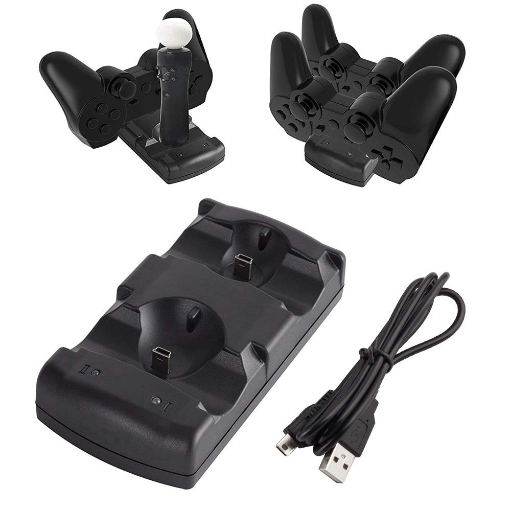 PS3 플레이스테이션 3용 듀얼 컨트롤러 충전기 PS3/ LED 표시등 및 USB 충전 케이블이 있는 무브 도킹 충전