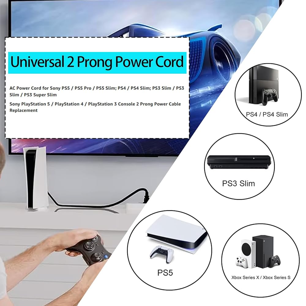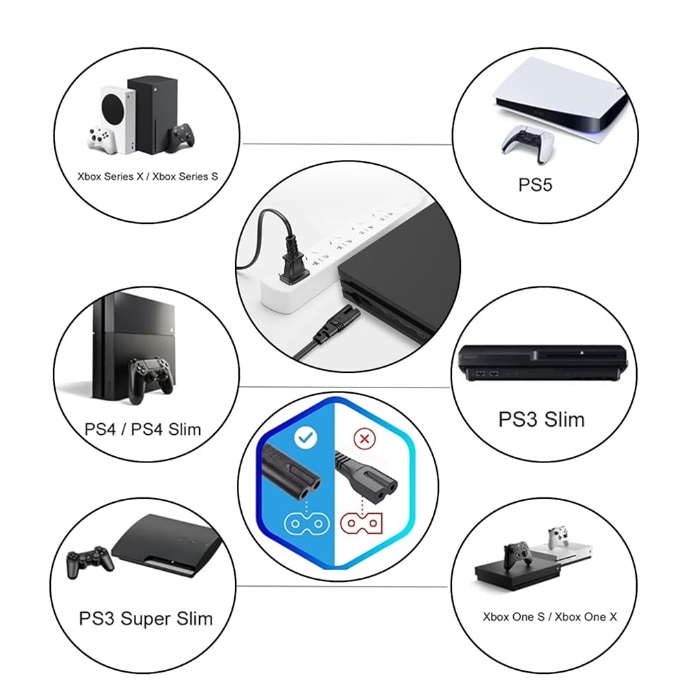 Xbox Series S/X Xbox One X/S Sony PS4/PS5 전원 케이블 교체 2팩용 10피트 AC 전원 코드 호환성