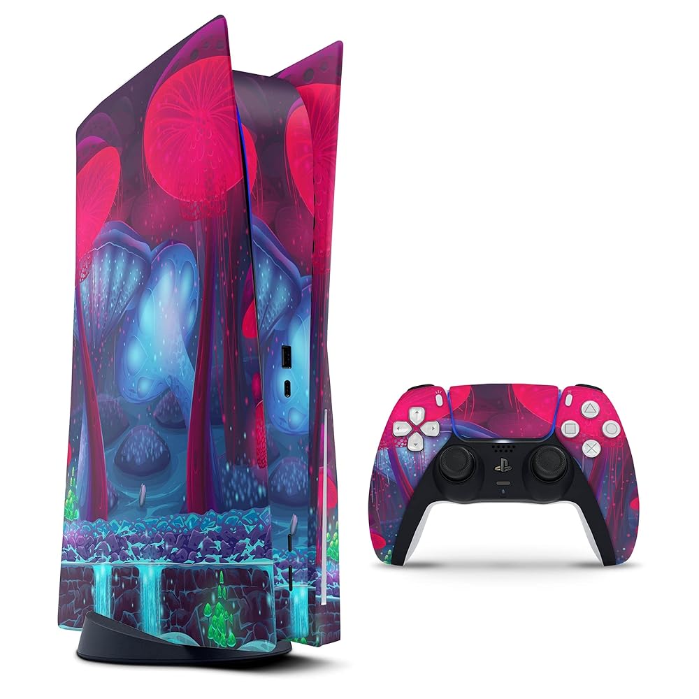 소니 플레이스테이션 3 콘솔 슈퍼 슬림 + 컨트롤러와 호환되는 디자인 스킨즈 빛나는 판타지 랜드 V2 전신