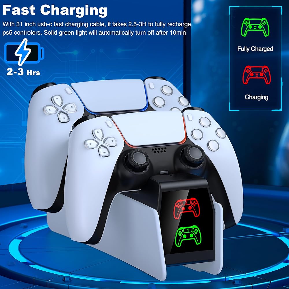 PS5 컨트롤러 충전소 PlayStation 5 페이스플레이트 엣지 및 듀얼 컨트롤러와 호환되는 PS5 충전 도크 LED