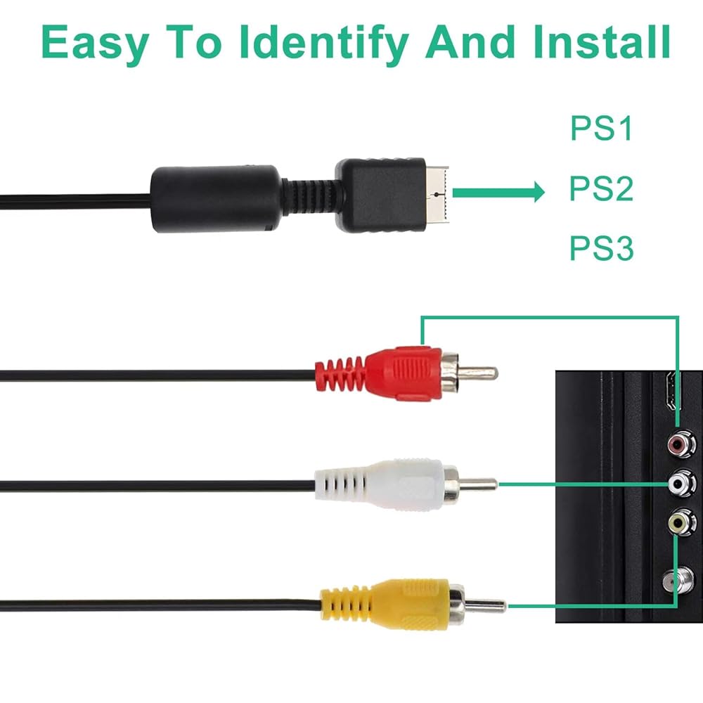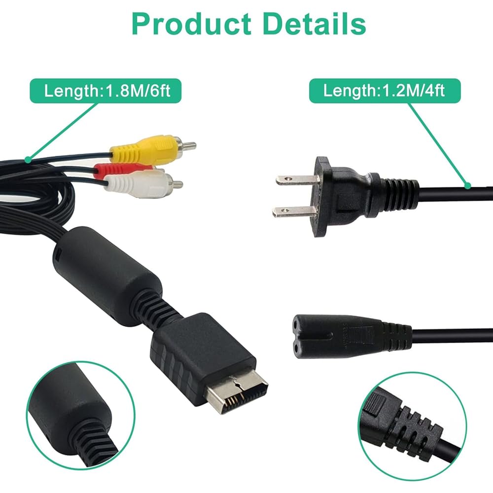 PS1 PS2 PS3용 AMYUSI 전원 코드 및 AV 케이블 PS2 PS3 AV 케이블 PlayStation 2용 AV to RCA 코드 3 / PS2