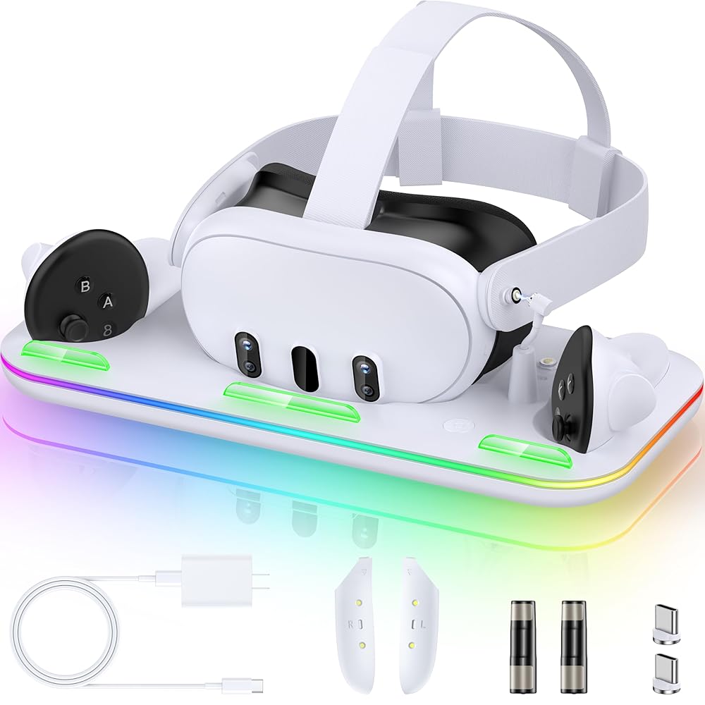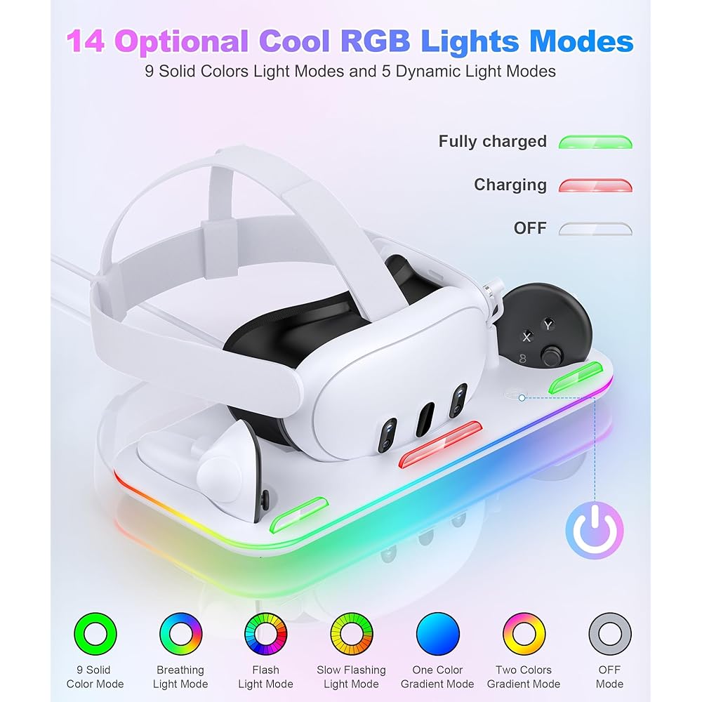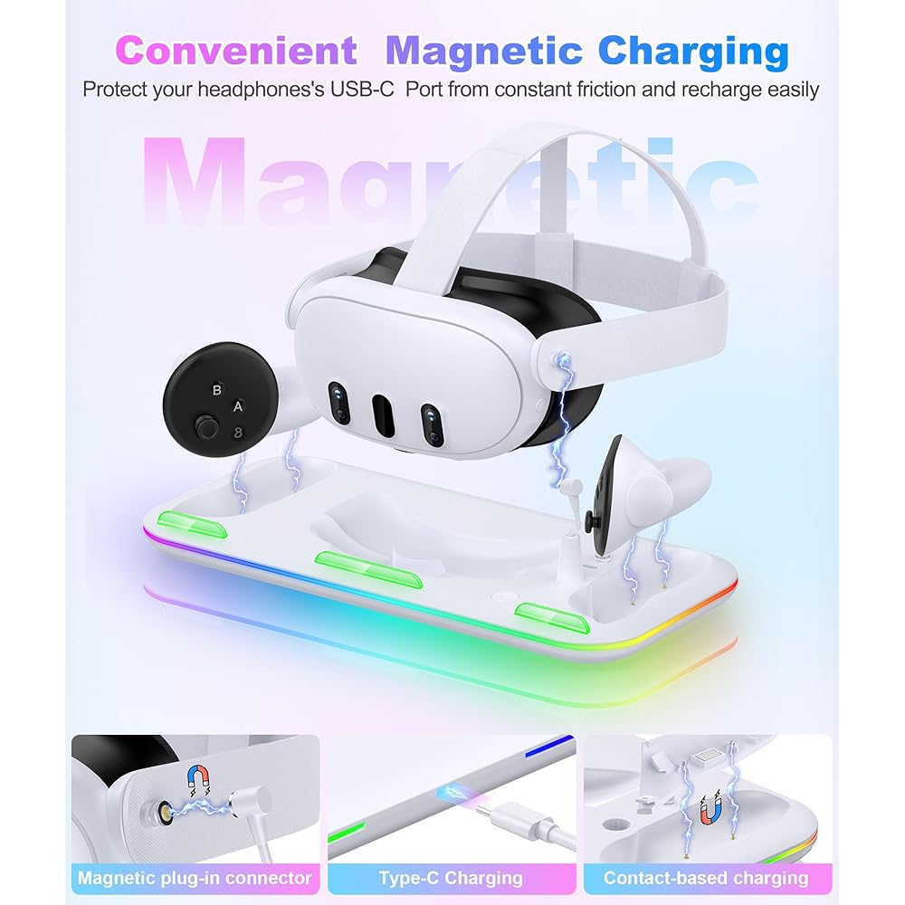 메타 퀘스트 3용 충전 도크 퀘스트 3 VR 헤드셋 및 컨트롤러용 마그네틱 충전 도크 3가지 충전 표시기 충전