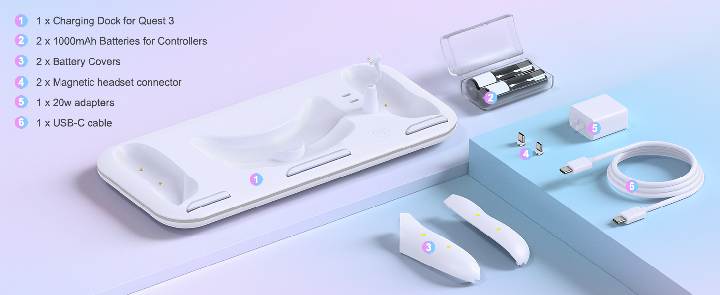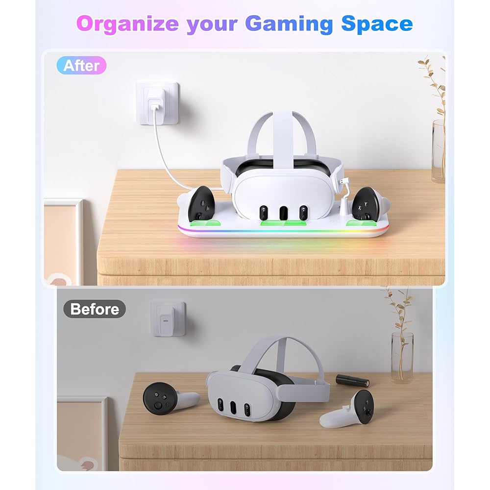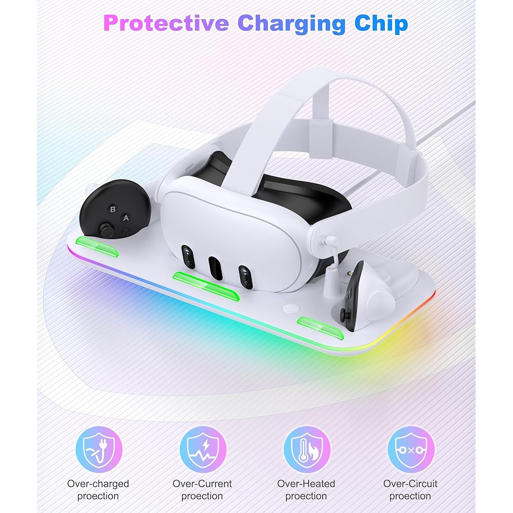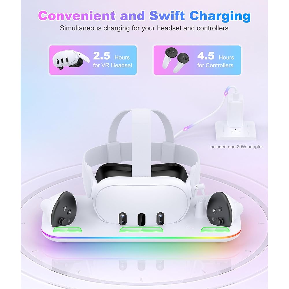 메타 퀘스트 3용 충전 도크 퀘스트 3 VR 헤드셋 및 컨트롤러용 마그네틱 충전 도크 3가지 충전 표시기 충전