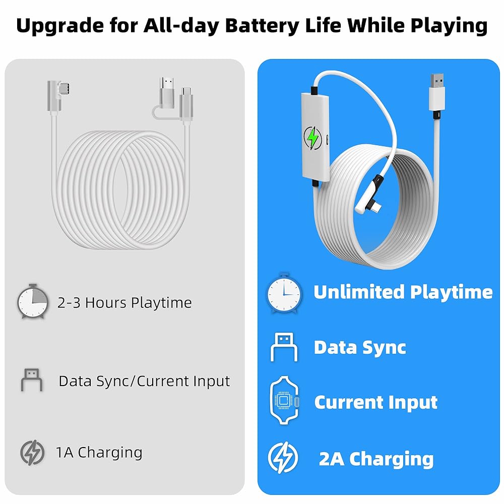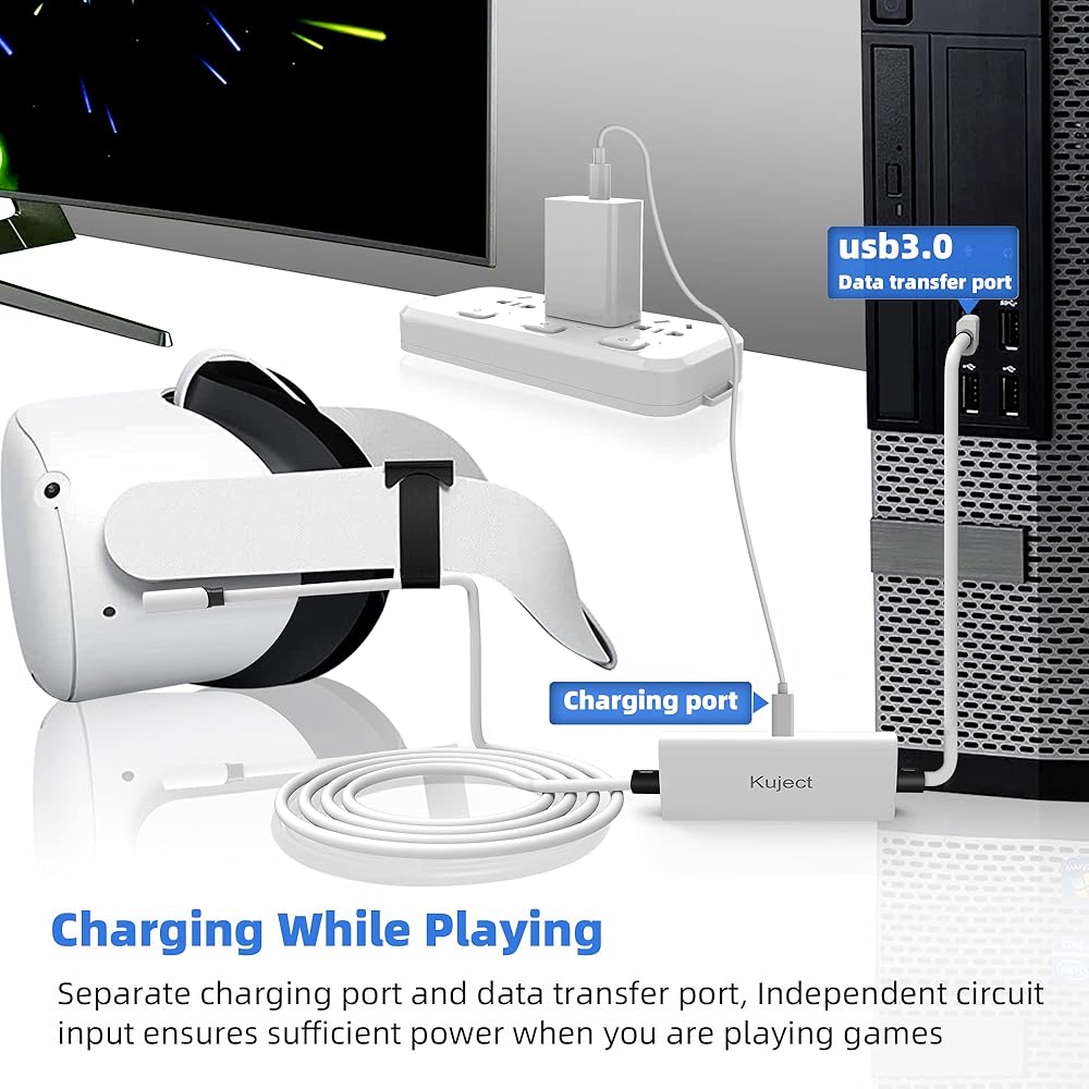 Quest 3S/3 Quest 2 및 Quest Pro용 Kujection 디자인 16FT 링크 케이블 끊김 없는 전원을 위한 별도 충전