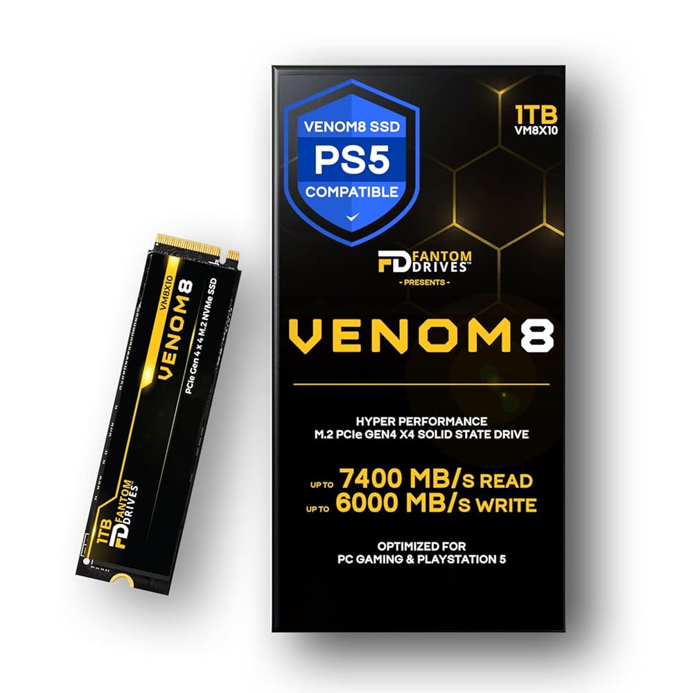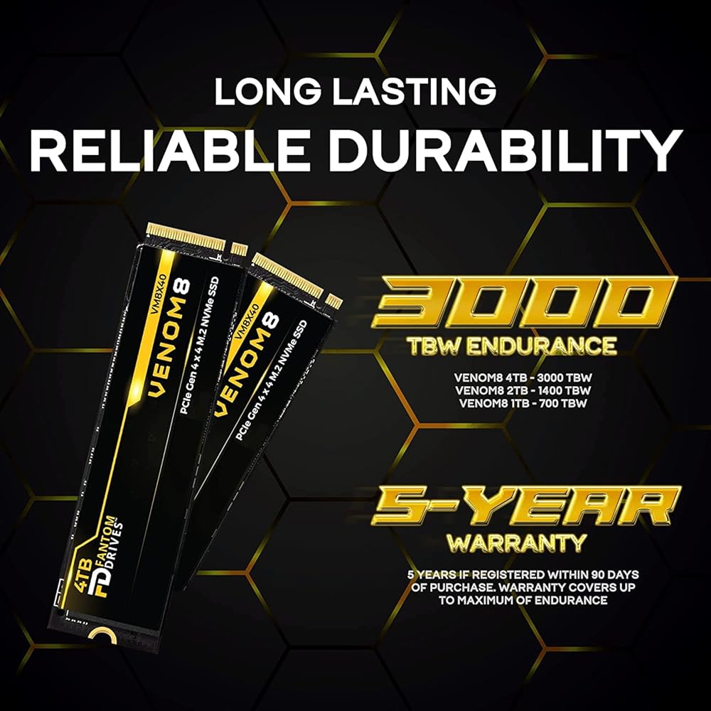 팬텀 드라이브 - VENOM8 2TB NVMe 4세대 M.2 내장 SSD - PS5 메모리 업그레이드 3D NAND TLC - DDR4 DRAM