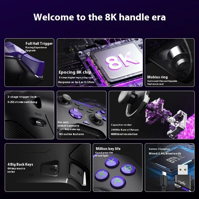 PXN P5 게임패드 PC NS 스마트폰용 무선 게임 컨트롤러 조이스틱 8000HZ 폴링률 홀 트리거 8K 3 모드