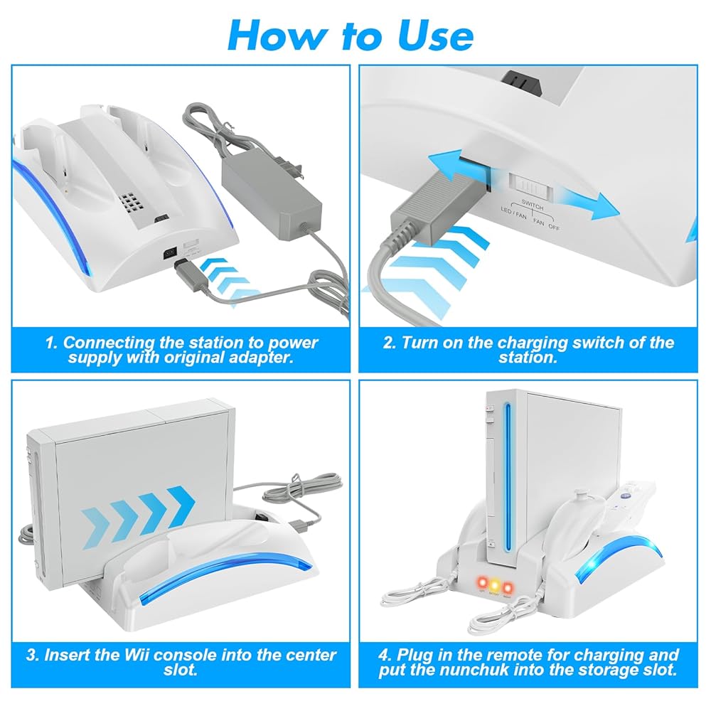 KEKUCUL Wii 원격 충전기용 게임 정리함 컨트롤러용 충전 도크 스테이션 Wii 콘솔 넌척 게임 액세서리 키트