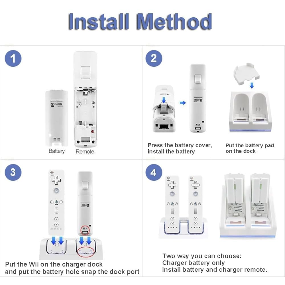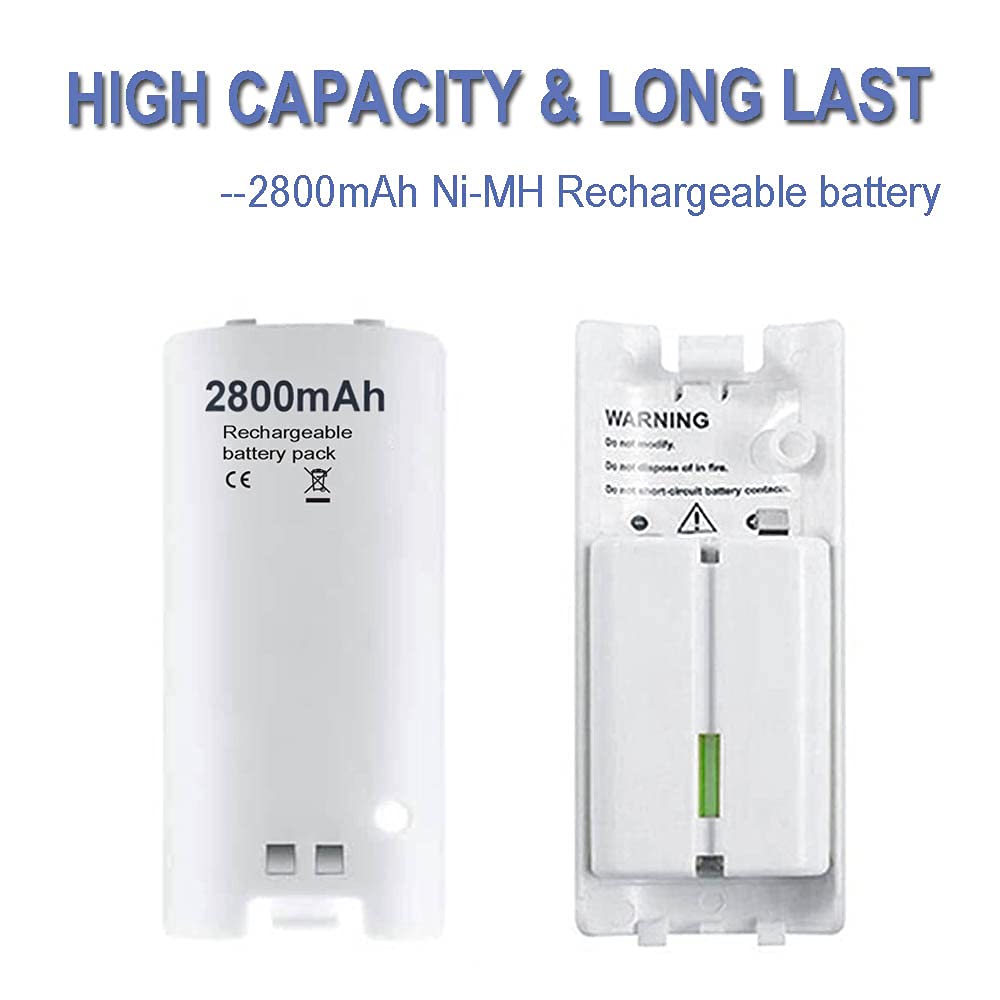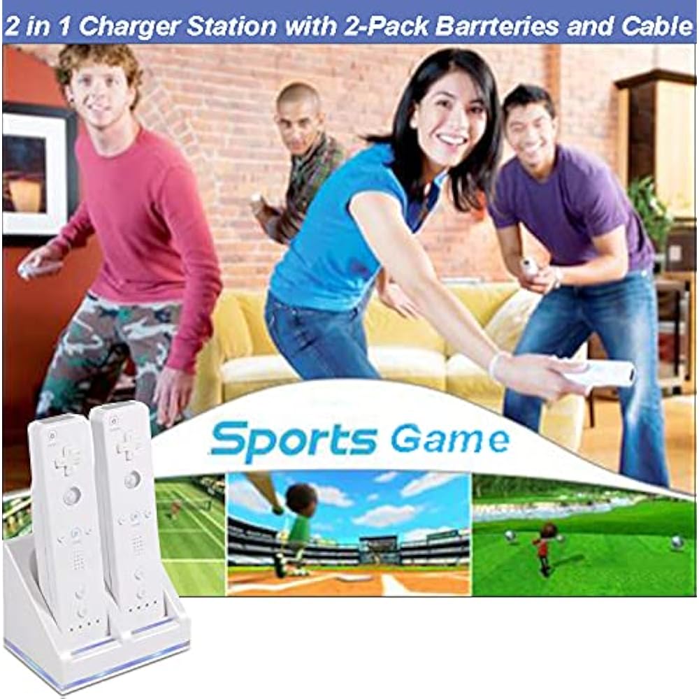 Wii 원격 충전기 2 in 1 충전소 충전 도크 2 팩 2800mAh 충전식 배터리 장착 Wii/Wii U 리모컨용