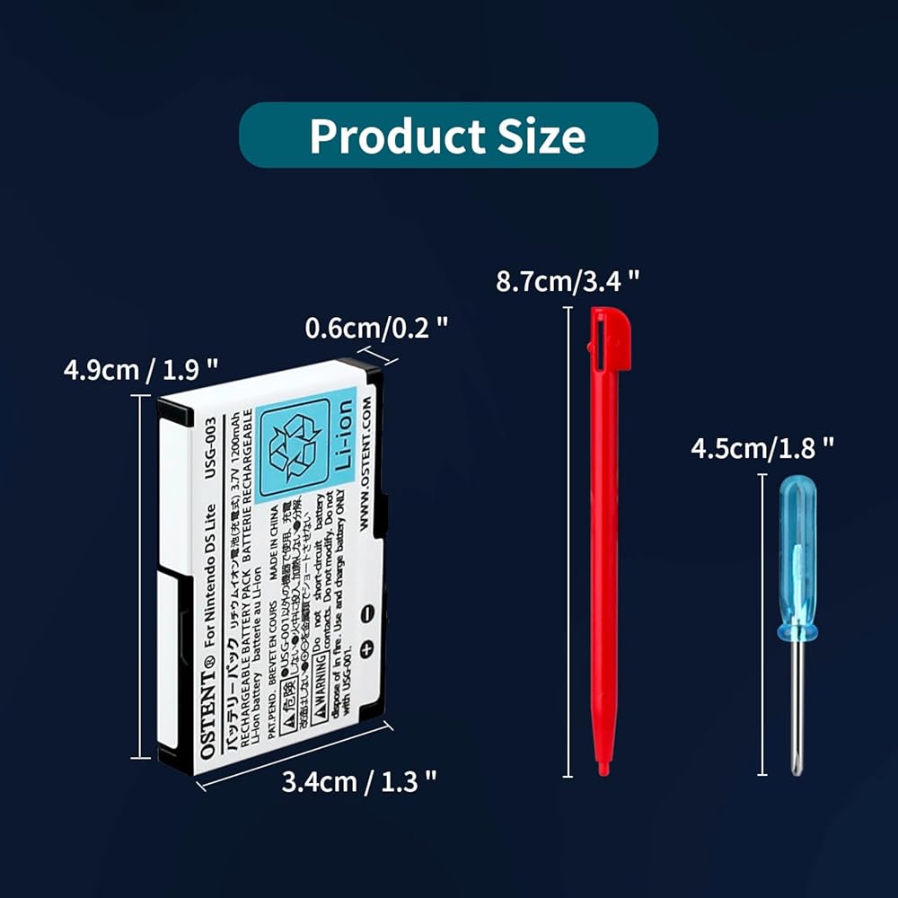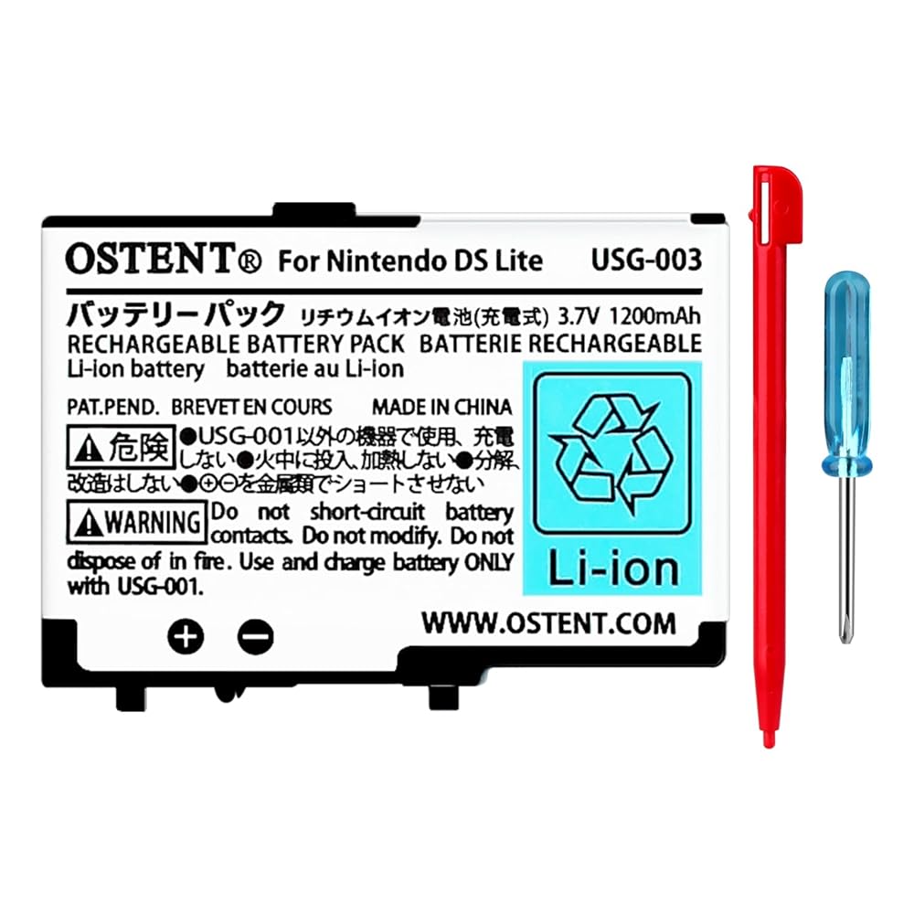 닌텐도 DSL 라이트용 OSTENT 3.7V 1200mAh 충전식 리튬 이온 폴리머 리튬 이온 배터리 팩 도구 키트