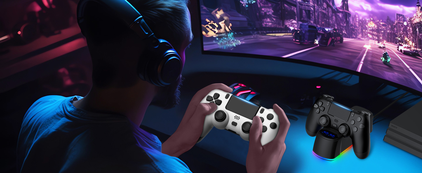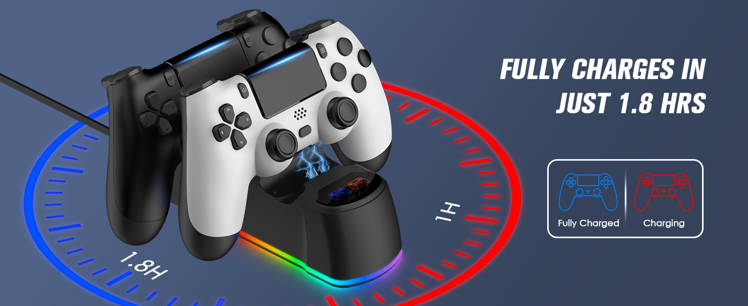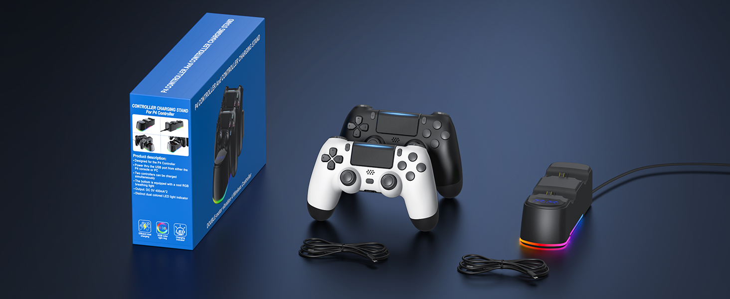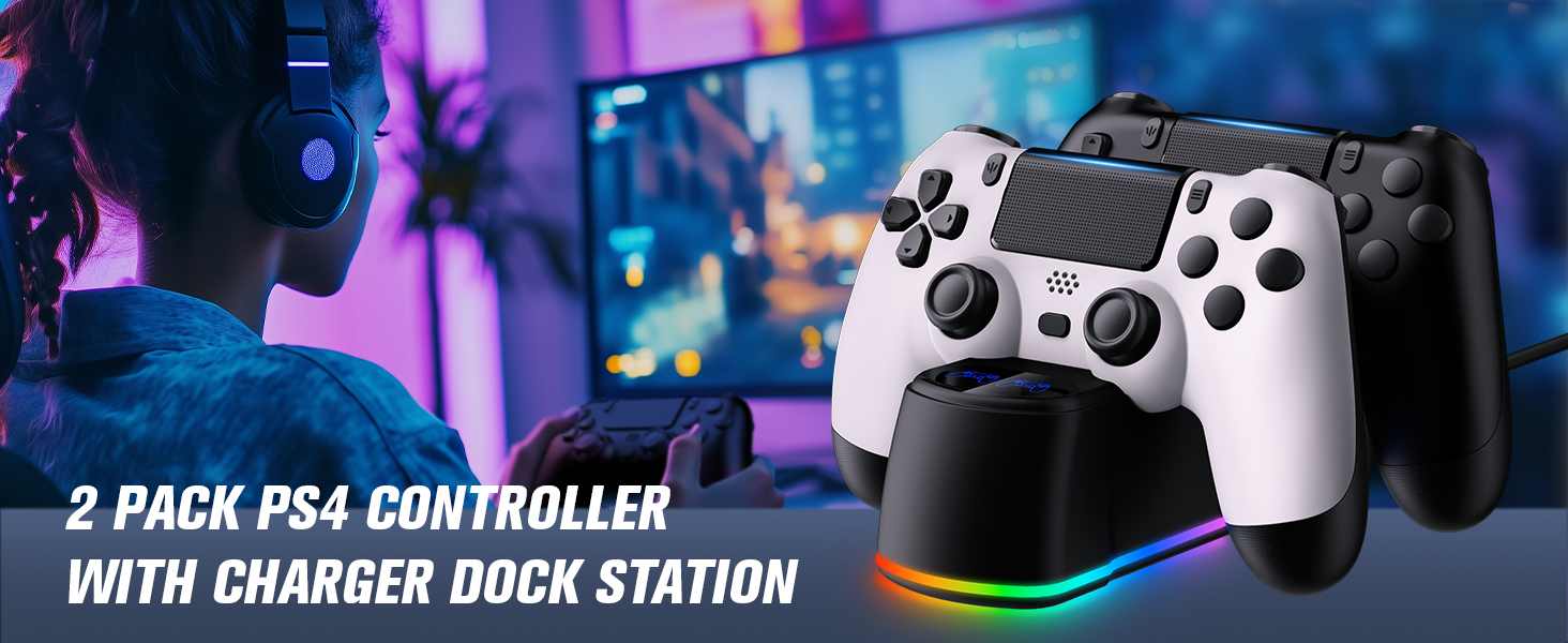 충전 도크 스테이션이 있는 PS4용 2팩 컨트롤러 PS4/Pro/Slim과 호환되는 무선 컨트롤러 LED 충전 도크가