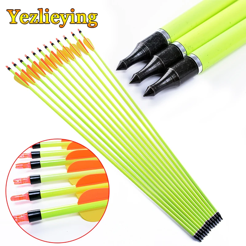 6/12/24 pcs 30 인치 혼합 탄소 화살 척추 복합 활 양궁 촬영을위한 500 형광 노란색 샤프트