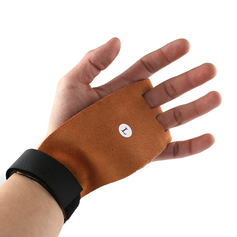 4. 유연한 가죽으로 손바닥을 덮고 후크와 루프 스트랩으로 손목 주위의 그립을 조일 수 있습니다.