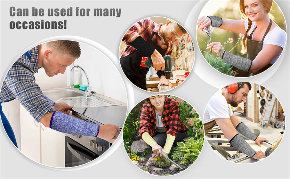 5. 넓은 적용 범위: 레벨 5 절단 저항 규격을 소유하고 있는 세이프티 암 슬리브는 산업, 건설, 등 다양한 상황과 분야에서 손목 팔 보호에 유용합니다. 식품 가공 시장, 부엌, 정원, 농장에도 적합하며 팔이 다치거나 긁히는 것을 방지합니다.