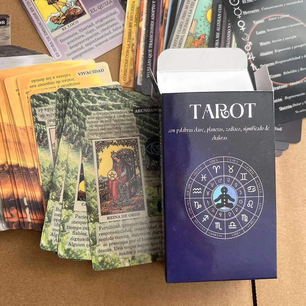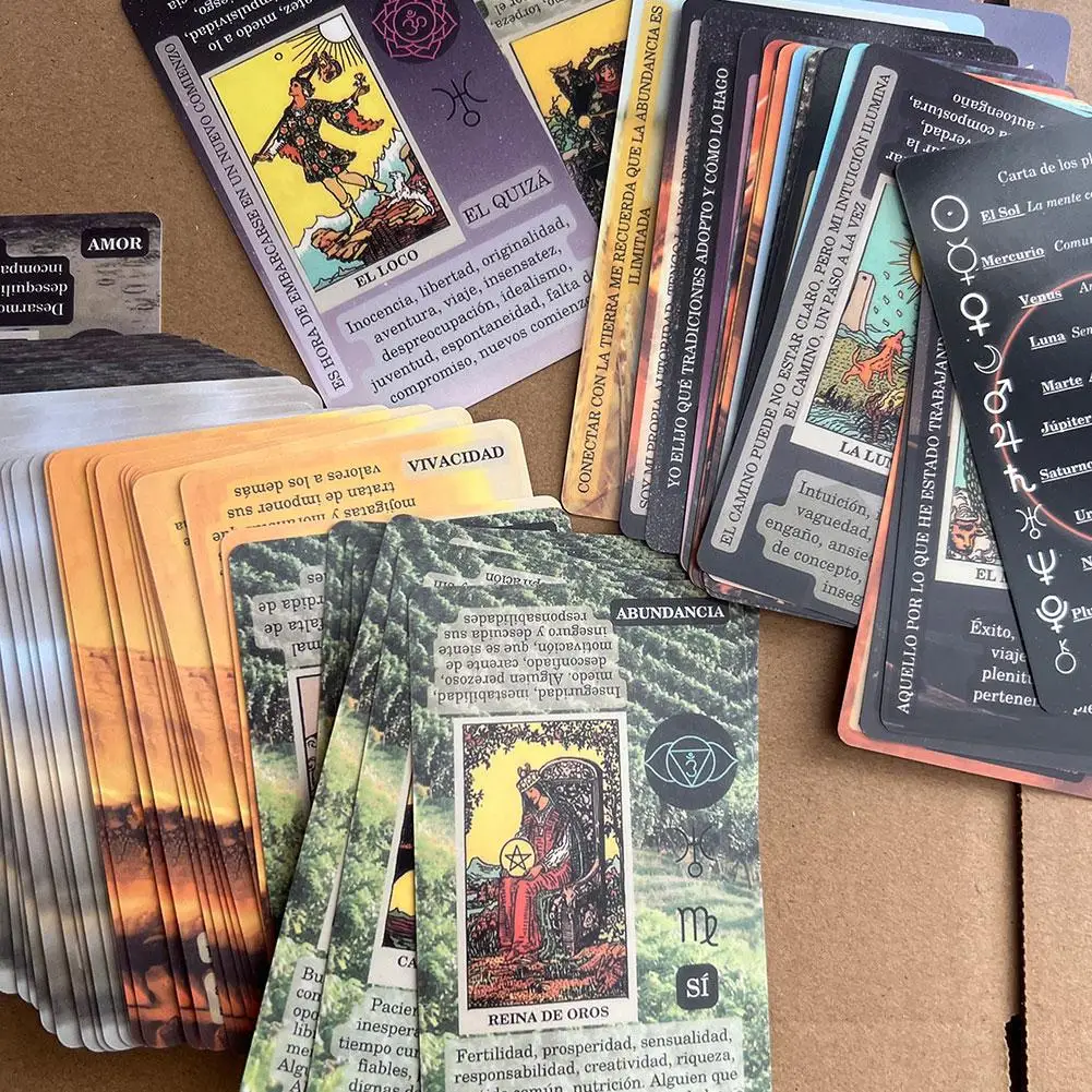 키워드: 각 카드에는 의미와 상징을 해석하는 데 도움이되는 키워드가 있습니다., 차크라, 행성, 조디악 징후 및 요소: 타로 카드에는 차크라, 행성, 조디악 표지판 및 각 카드와 관련된 요소에 대한 정보도 포함되어 있습니다., 확인 및 예 또는 아니오 답변: 마녀의 가마솥 타로 데크는 또한 카드를 통해 확인과 예 또는 아니오 답변을 허용합니다.