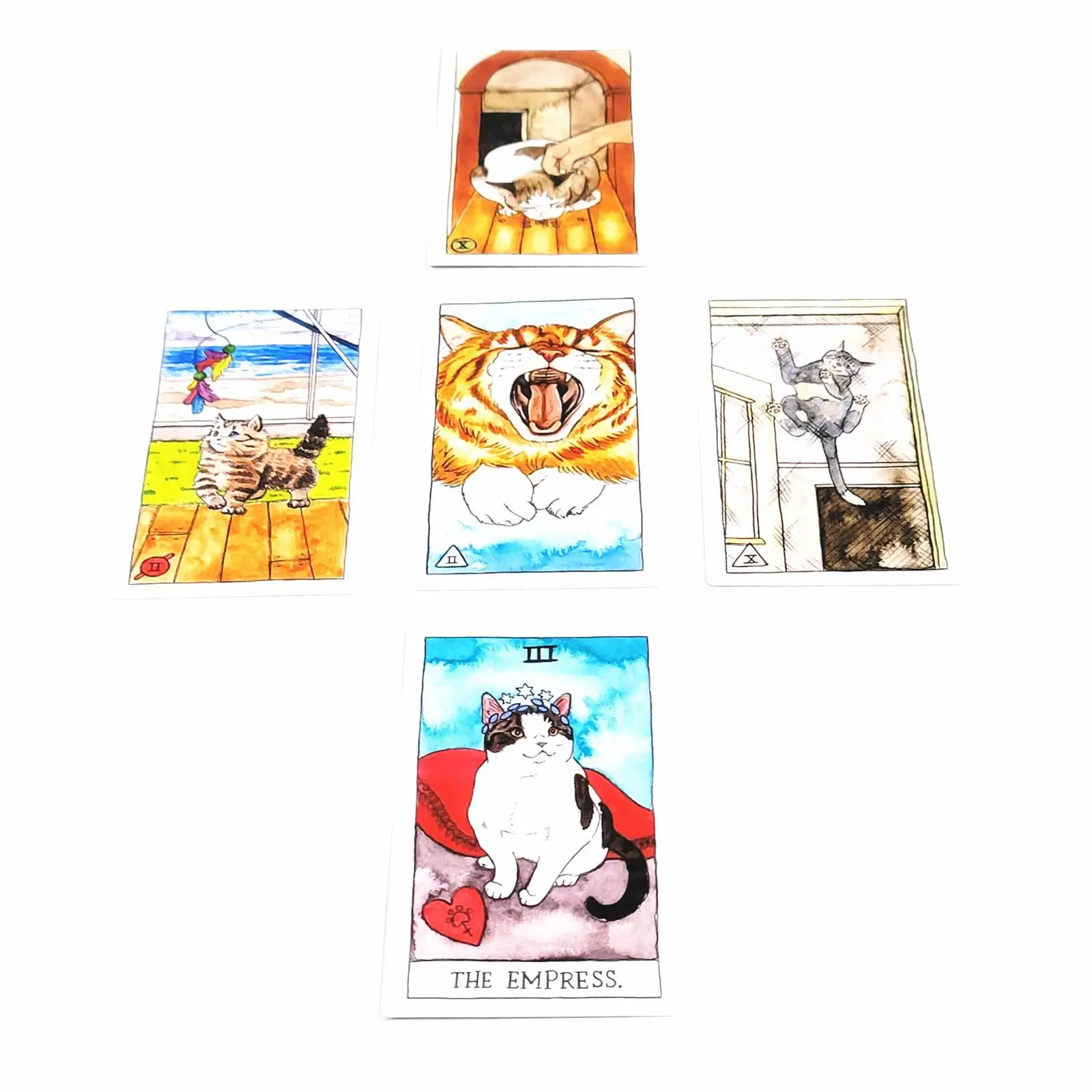 Cat Tarot 카드는 1980 년대에 태어 났으며 유명한 미국 예술가 Kitty Kahane가 만들었습니다. Kahane는 어렸을 때부터 고양이 그리기를 좋아했으며 나중에 타로 카드에 관심을 가지기 때문에 취미와 영감을 결합하여이 독특한 고양이 타로 카드를 만들었습니다.