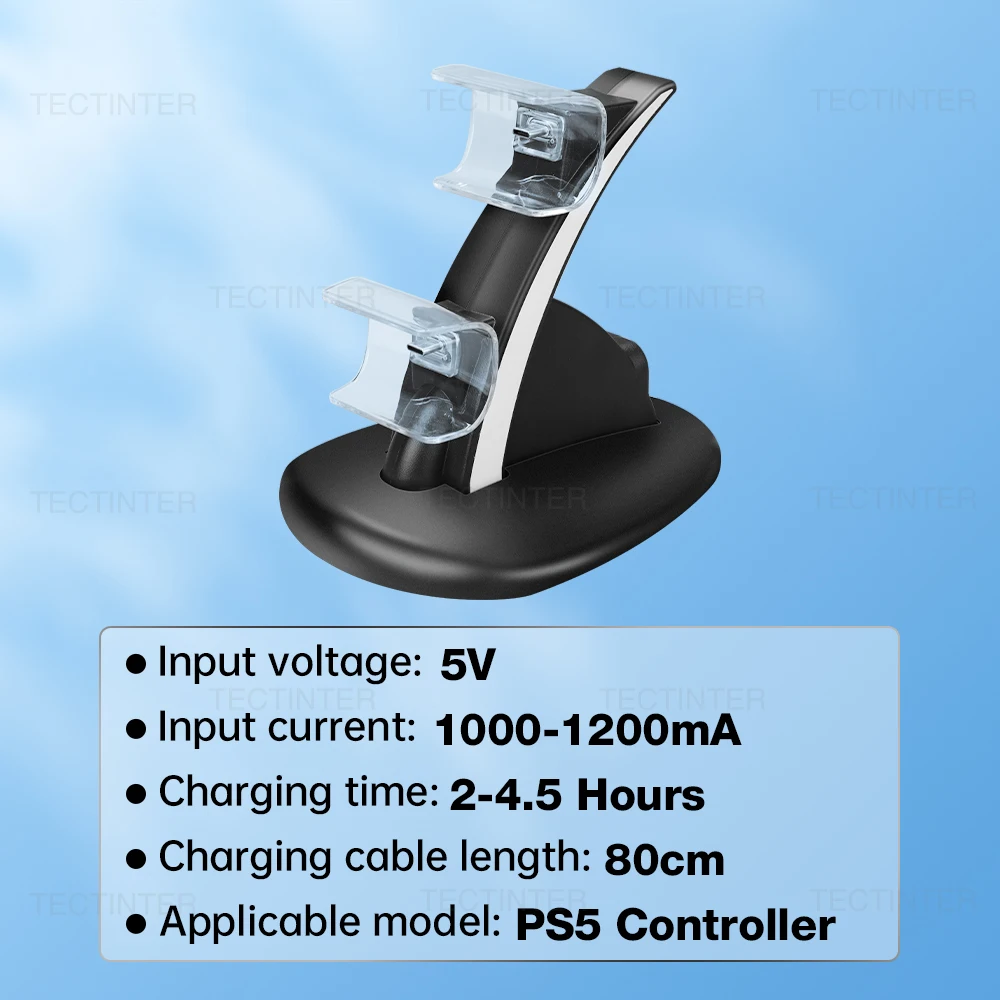 이 PS5 컨트롤러 충전 스테이션은 지정된 전원 어댑터에 연결되도록 설계되었으며 듀얼 PS5 컨트롤러 동시에 충전할 수 PS5 컨트롤러의 필수 액세서리로 playstation호환 5 콘솔로 더 오랜 시간 동안 게임을 즐길 수