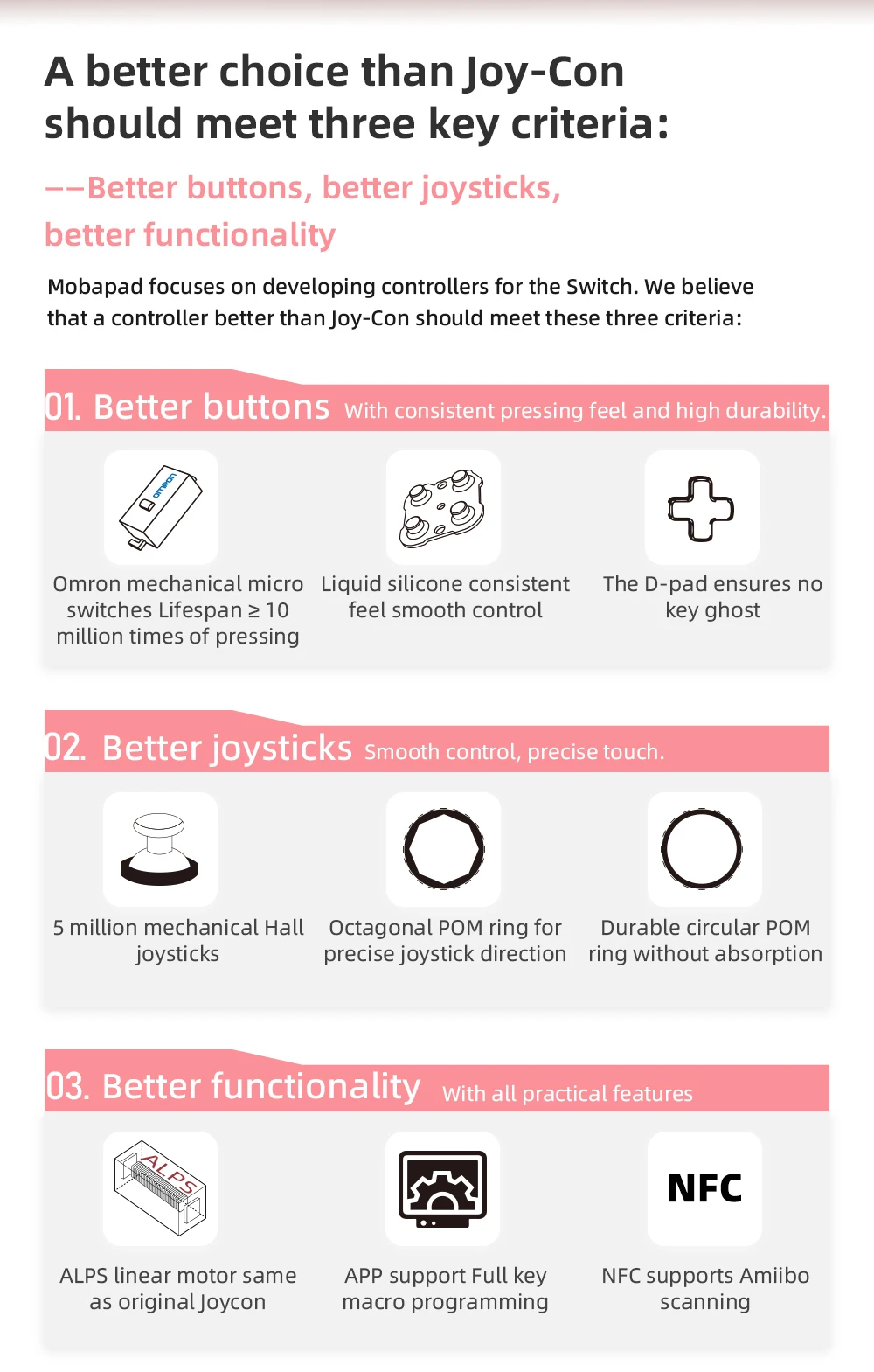 스위치호환 컨트롤러 프로 조정 가능한 조이스틱 홀 효과 컨트롤러 HD 진동/6 축 자이로 조이패드 Mobapad M6 HD 조이콘