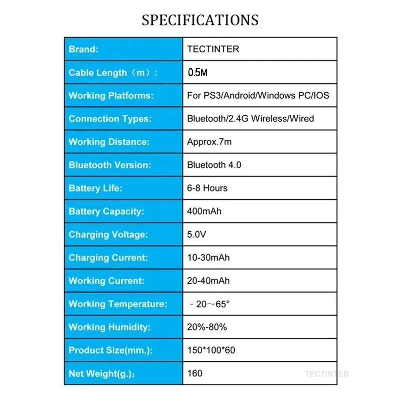 참고: 이 게임패드는 Bluetooth로 연결되어 있지만 PC&TV Box&ps3호환 장치와 호환될 수 있지만 컨트롤러 연결하여 이러한 장치 통해 게임을 플레이하려면 특수 수신기 일치시켜야