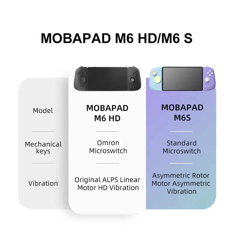 탁월한 게임 경험을 추구하는 것이 바로 M6S 및 M6 HD가 탄생한 이유입니다. M6S에는 견고하고 안정적인 표준 마이크로스위치와 로터 모터 진동 기술이 장착되어 있어 신속한 컨트롤러 반응과 촉각 피드백을 보장 이에 비해 M6 HD는 Omron의 고정밀 마이크로스위치와 오리지널 ALPS 선형 모터 통합하여 제어 정확도와 촉각 반응을 완전히 수준으로 끌어올렸습니다. 정밀한 입력 실행이든 몰입감 넘치는 진동 경험이든 M6S와 M6 HD는 모두 게이머에게 비교할 수 없는 감각적 만족감을 제공하도록 설계되었습니다.