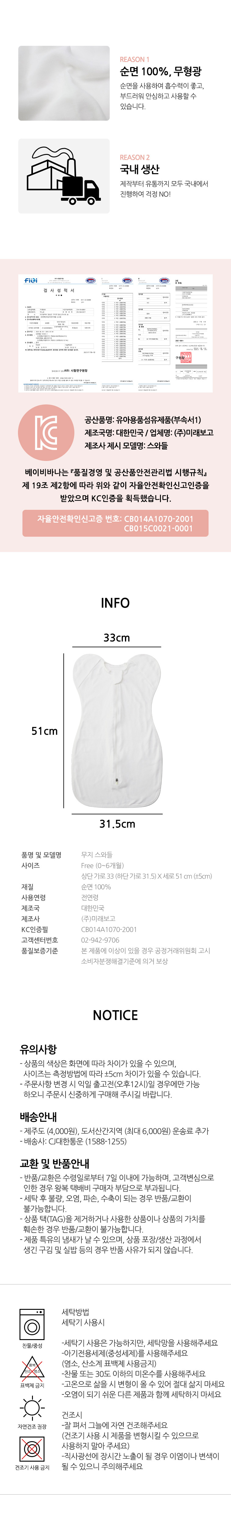 (15%+10%)(베이비바나/국내생산)무형광 순면100% 무지 스와들 2Color