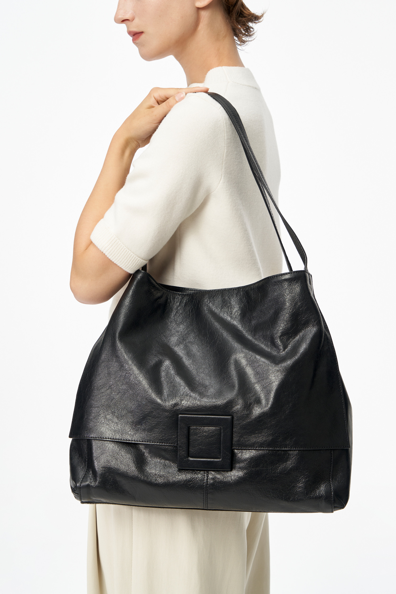 캐리오버 상품입니다. 기존 투핸들이던 핸들방식에서 짧은 핸들을 삭제한 숄더백입니다. 핸들부분에 원핸들방식으로 수정되어 가뿐하고 실용적인 사퍼사이즈의 원핸들 숄더백으로 구성되었습니다. 전체 올오버 고트빈티지로 구성되어 경량감이 뛰어나며 매트한 느낌이 고급스러운 스타일입니다.