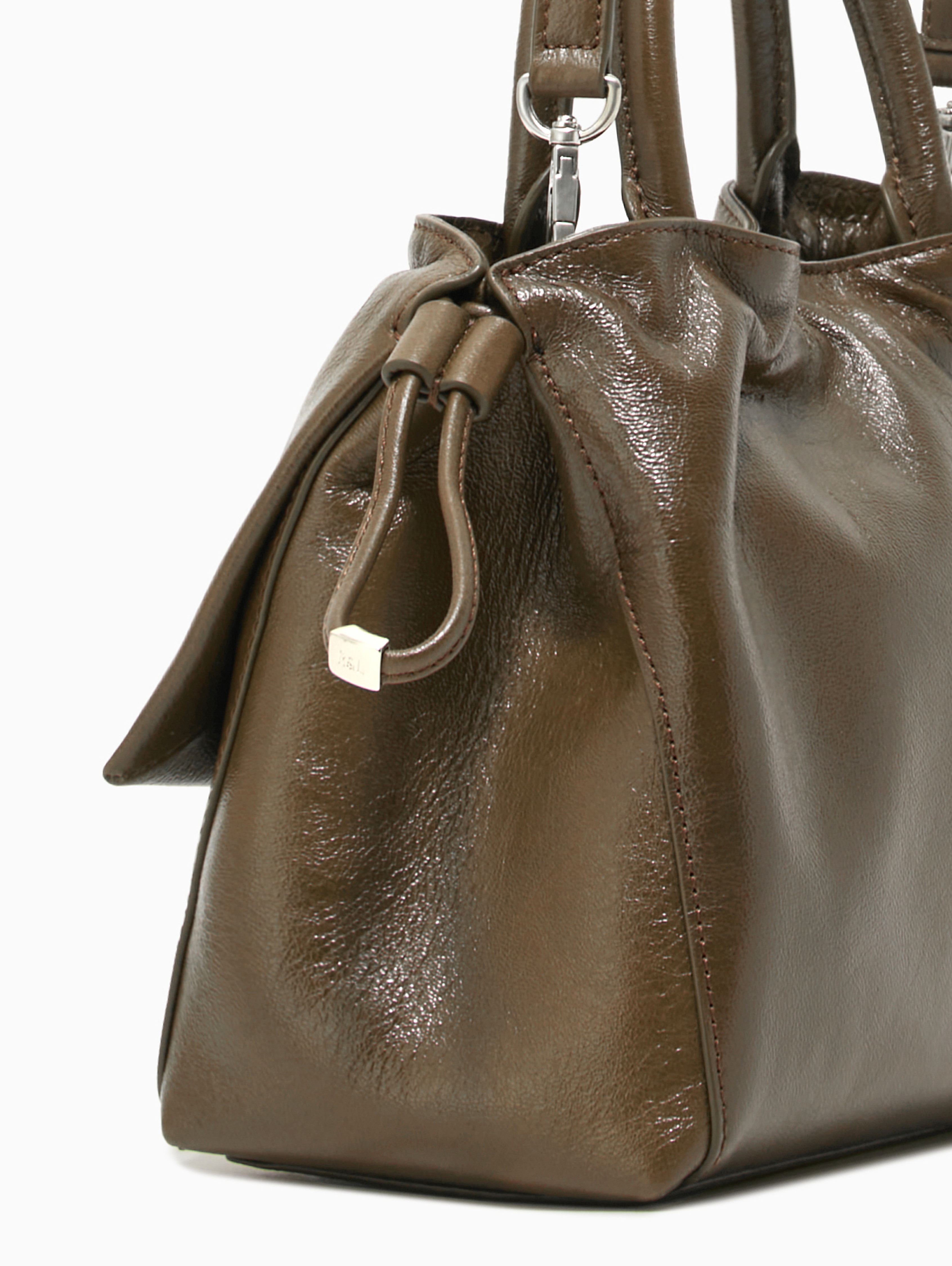 스트링의 조임으로 유연한 쉐입을 연출하며, 스트링의 하드웨어가 무게감 있게 떨어져 실용성을 더했습니다.
