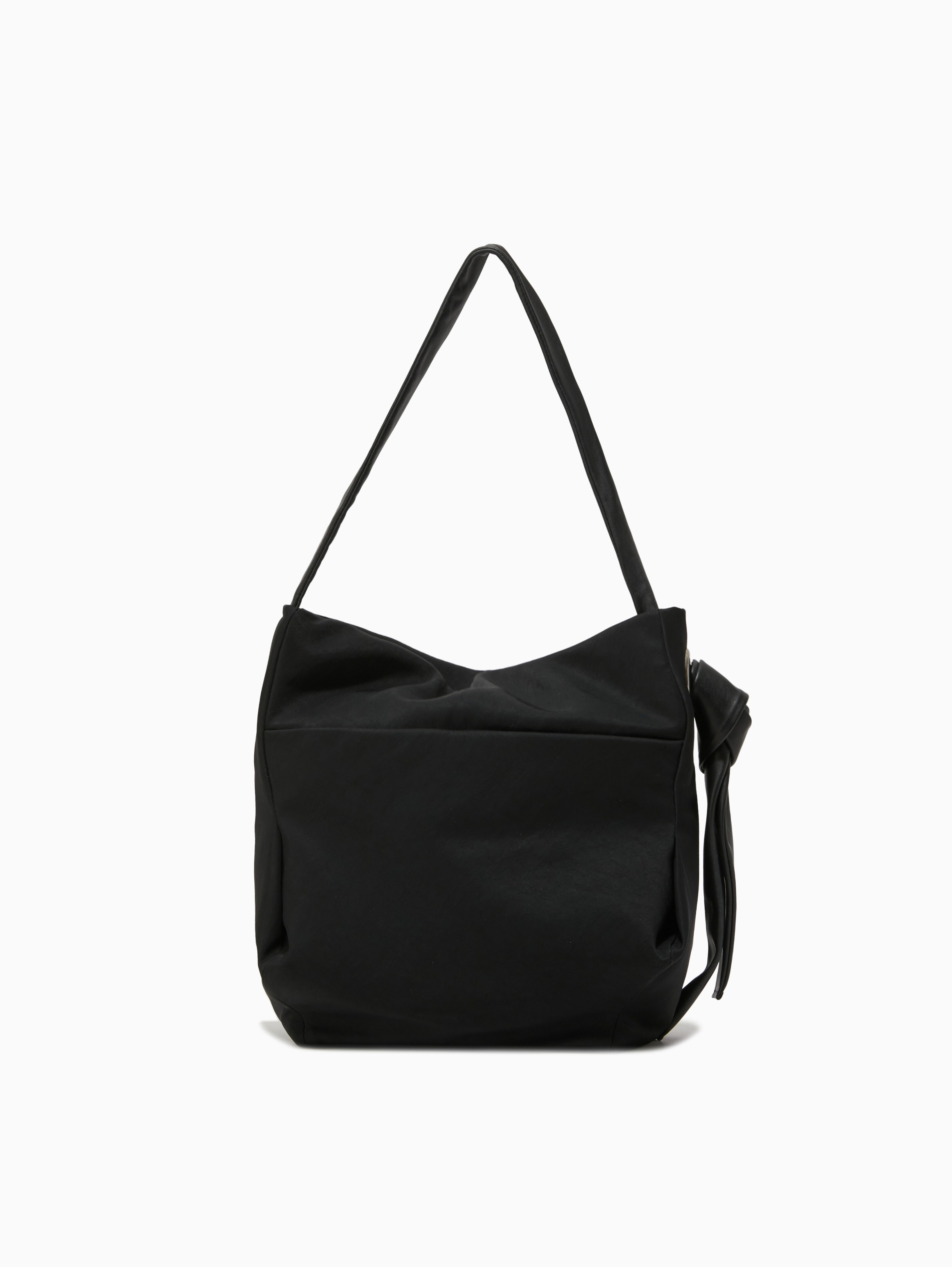 자연스러운 워싱 원단이 가볍고 숄더끈 매듭을 풀어서 길게 묶으면 롱 숄더로도 사용할 수 있어 다양한 착장에 스타일링하기 좋습니다.