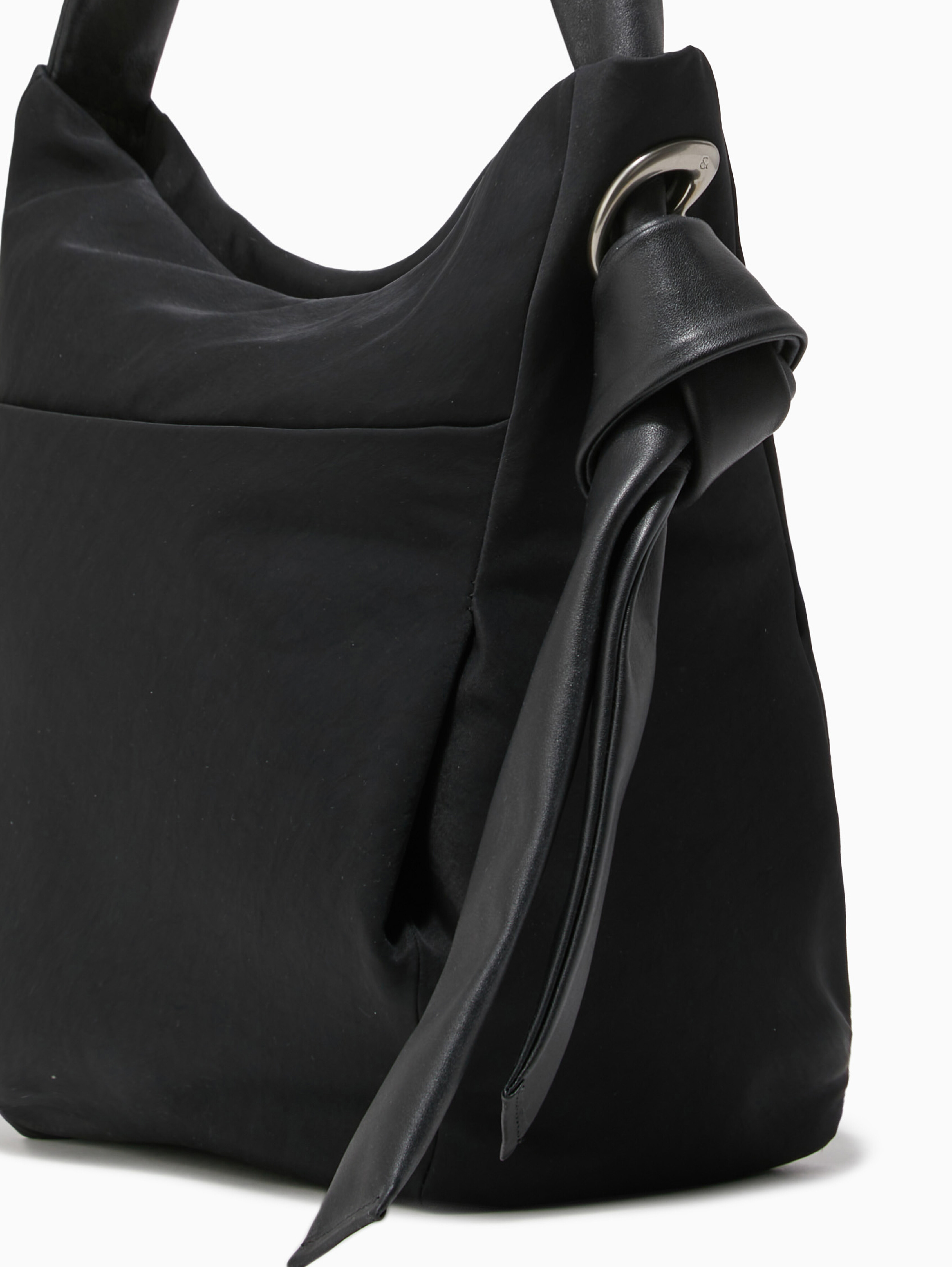 몸에 감기는 소프트한 스타일과 소재, 'R'을 모티브로 한 포인트 장식, 매듭과 주름 디테일이 멋스러운 릴라 숄더 M 스타일입니다.