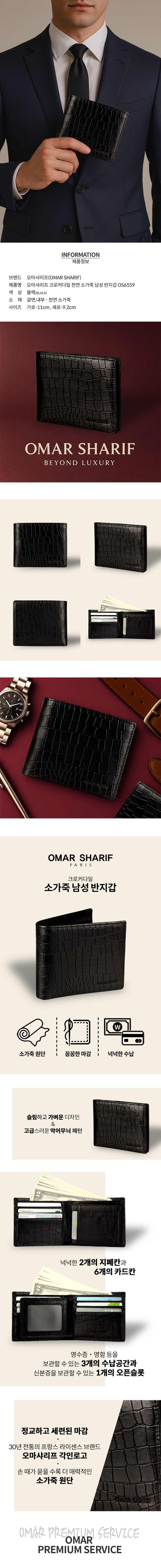 오마샤리프 크로커다일 천연소가죽 남성 반지갑 OS6559
